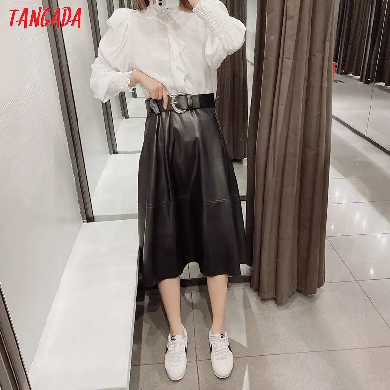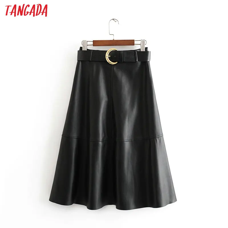 Special Offer Tangada nero delle donne di cuoio DELL UNITÀ di elaborazione gonne midi con slash elegante retro ufficio delle signore gonne 3H164 Discount 30% Today!