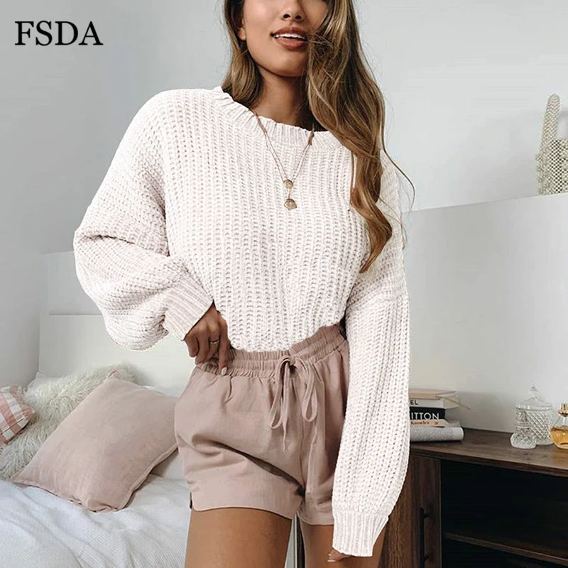 Special Offer FSDA Rosa Breve Maglione Allentato Delle Donne Nero Bianco Lungo Del Manicotto Della Lanterna Pullover O Collo casual Dolce e Carino Ufficio Knit Crop maglione Discount 40% Today!
