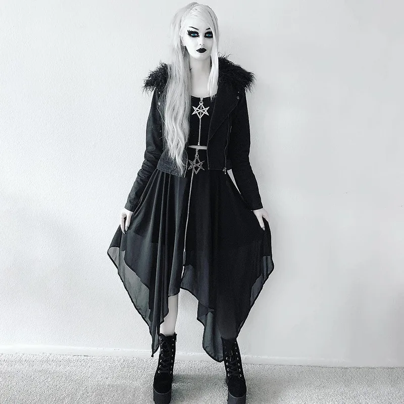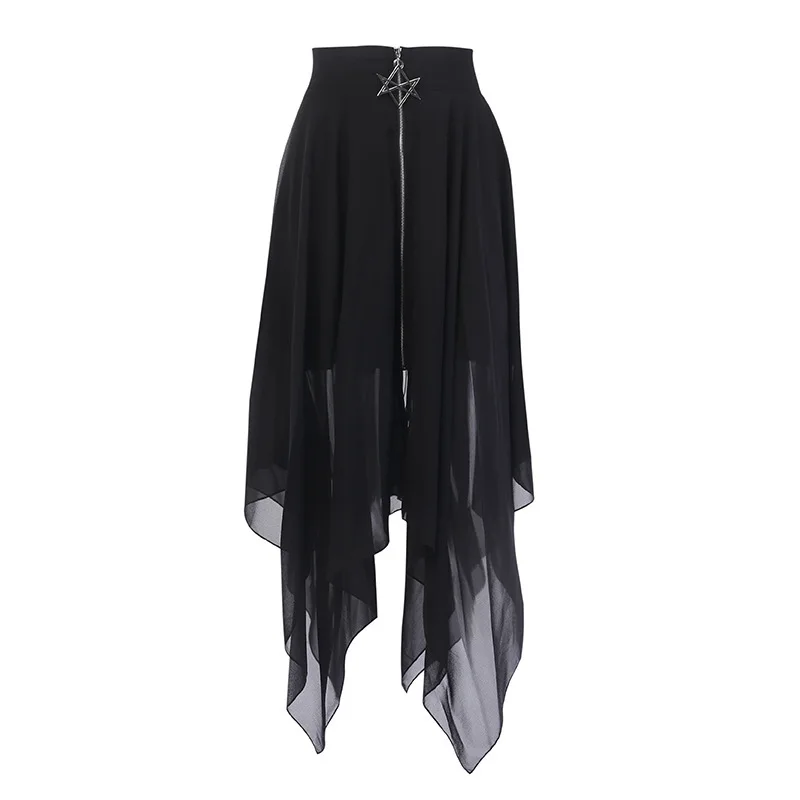 Product Name: JIEZuoFang Della Maglia di Estate Delle Donne Gonne star Della Chiusura Lampo Nero Punk Gonne Gotico Buio Pannello Esterno Della Signora casual Allentato Streetwear Gonne