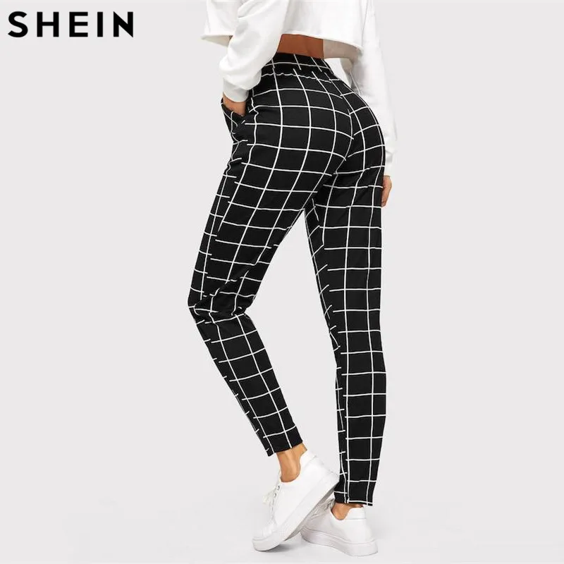 Special Offer SHEIN Nero Plaid Metà di Vita Scarni Pantaloni Carota Donne di Autunno Casual Slim Fit Verticale Delle Donne Della Matita Streetwear Pantaloni Discount 41% Today!