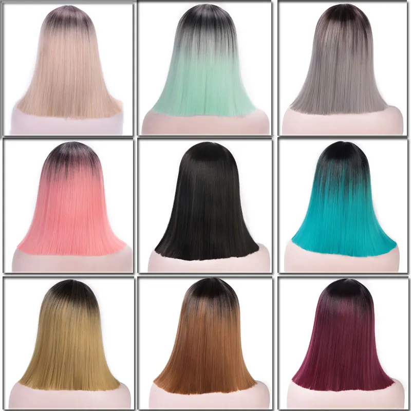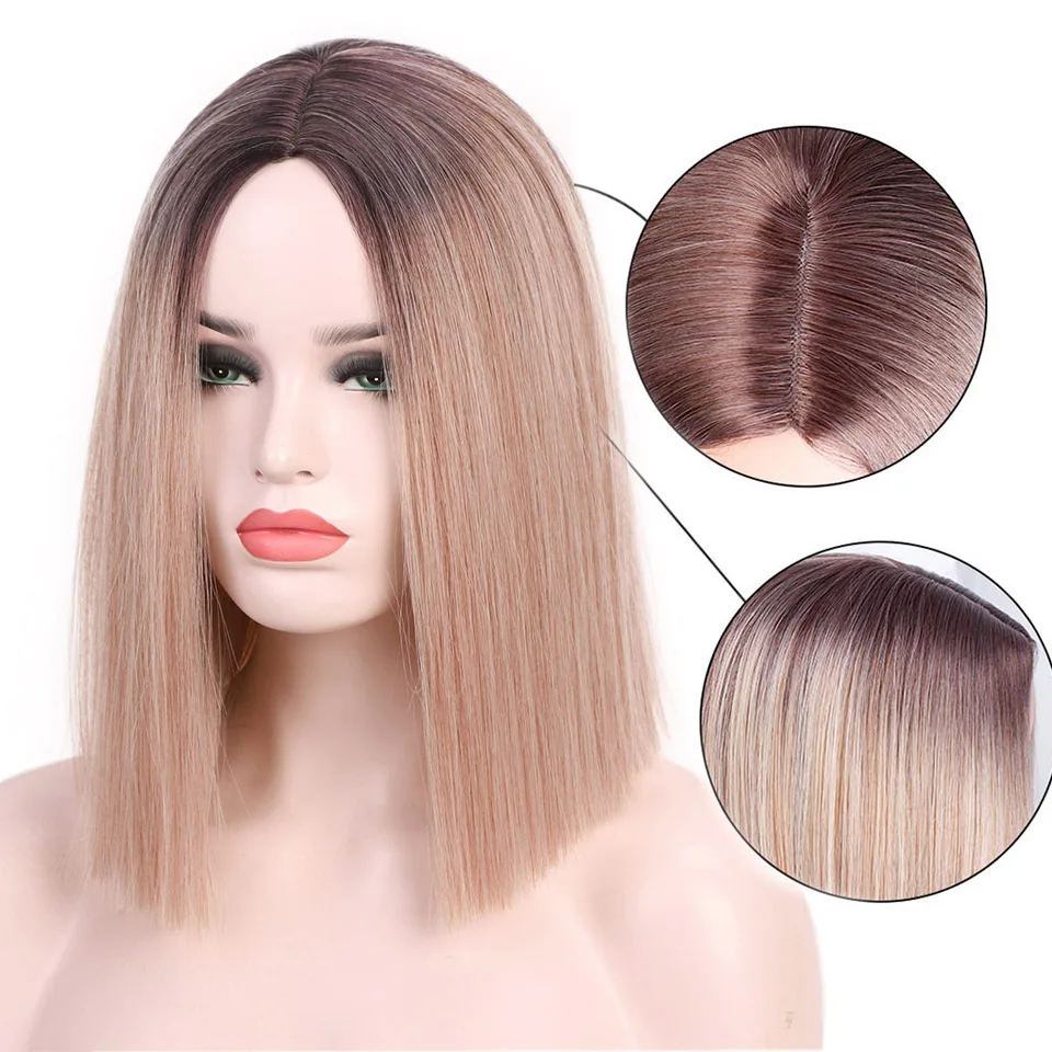 Product Name: I s una parrucca Breve Rettilineo Blunt Parrucca Sintetica Misto Brown e Blonde Parrucche per il Bianco Nero Delle Donne di Mezza parte di Natura Parrucche