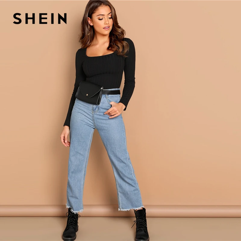 . (41% Off) Offerte SHEIN Moderna Della Signora Nero Piazza Collo Aderente Scarni della Metà di Vita A Manica Lunga Body Donna Autunno Pianura Elegante Body e Tutine Economici Prezzo Online.