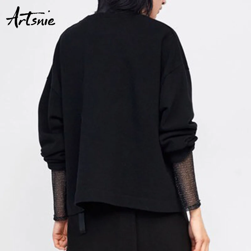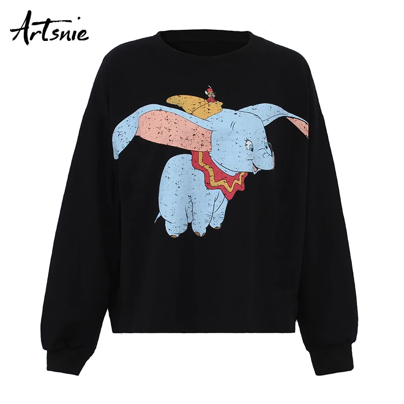 Special Offer Artsnie Nero casual Lavorato A Maglia Del Fumetto Delle Magliette Felpate Delle Donne Primavera del 2019 O Collo A Manica Lunga di Grandi Dimensioni Felpe Femme Maglione Felpa Discount 42% Today!