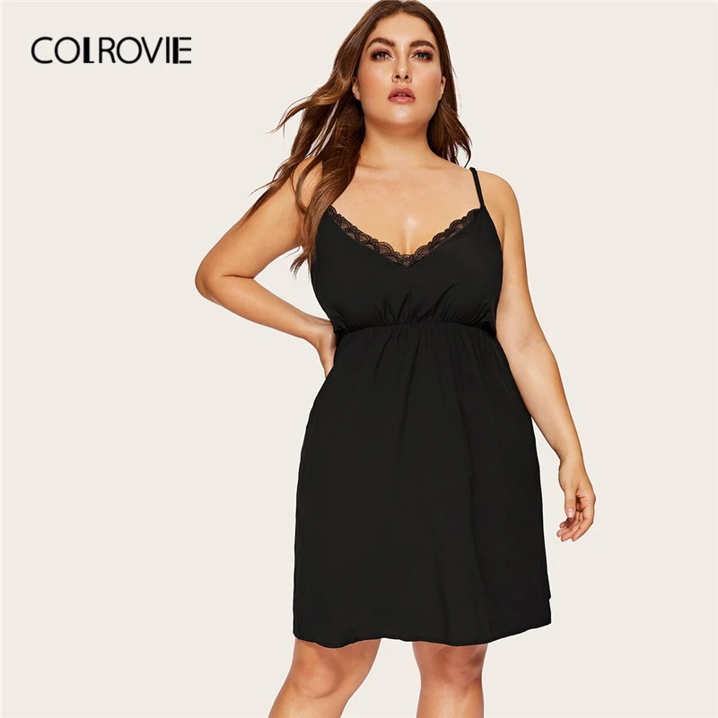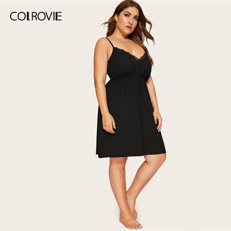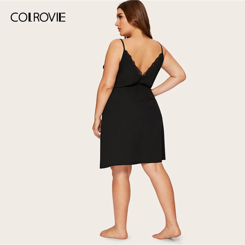 Special Offer COLROVIE Più Il Formato Navy Incrociato Posteriore Sexy Del Merletto Del Vestito Da Notte Delle Donne 2019 Primavera Senza Maniche Salotto Degli Indumenti Da Notte Camicia Da Notte Delle Signore Discount 42% Today!