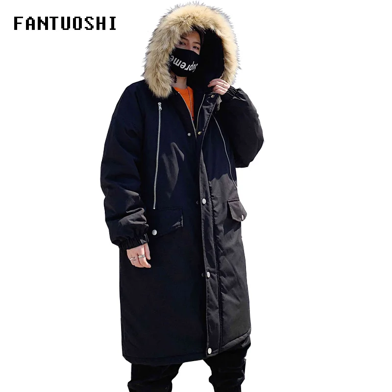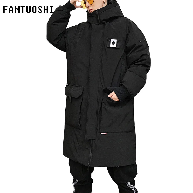 Product Name: 2019 degli uomini di Inverno Cappotto Lungo di modo caldo di Spessore sottile casual giacche con cappuccio A maniche Lunghe con stampa di alta qualità giacca di cotone nero