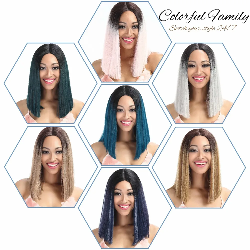 Product Name: Nobile Capelli Sintetici Anteriore Del Merletto Parrucca Diritta Dei Capelli 14 Inch Parrucche Del Merletto Per Le Donne Nere Ombre Capelli Sintetici Anteriore Del Merletto parrucca