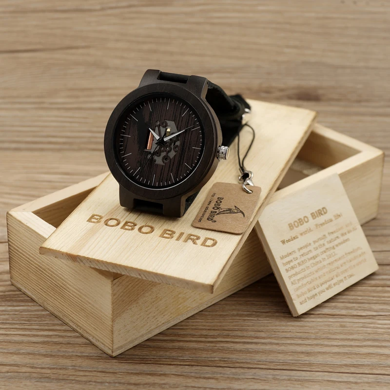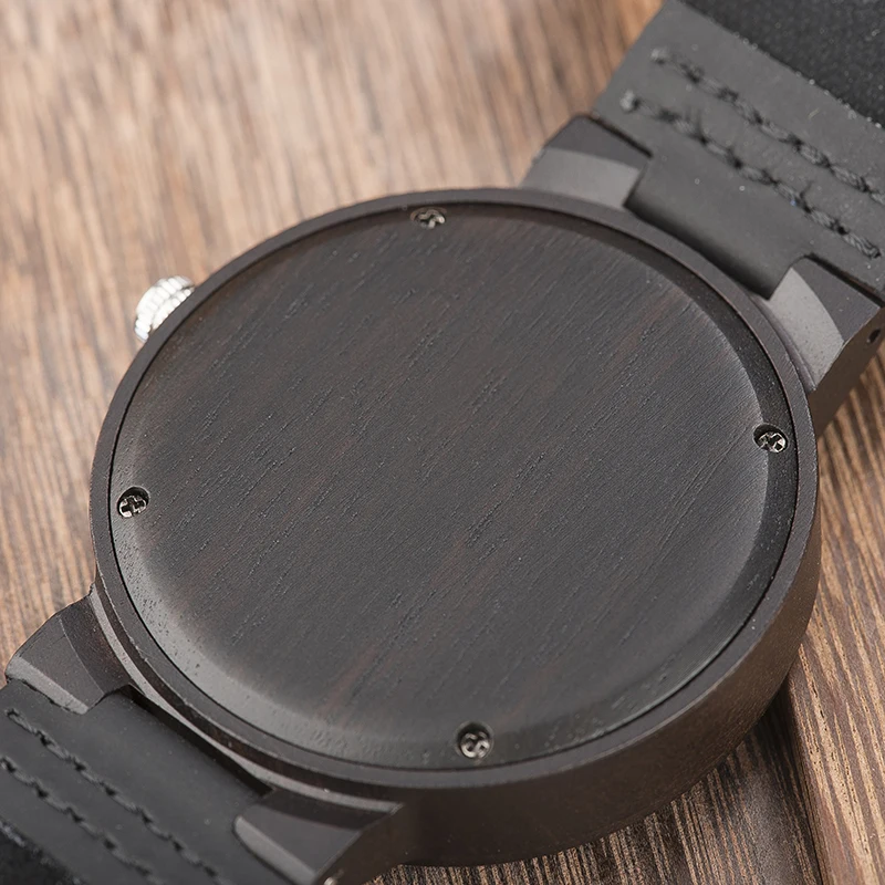 Product Name: BOBO UCCELLO di Legno Orologi Per Gli Uomini casual Black Watch Cinturino In Pelle di Vacchetta Con La Scatola di Legno Regalo di Giorno del Padre C H30