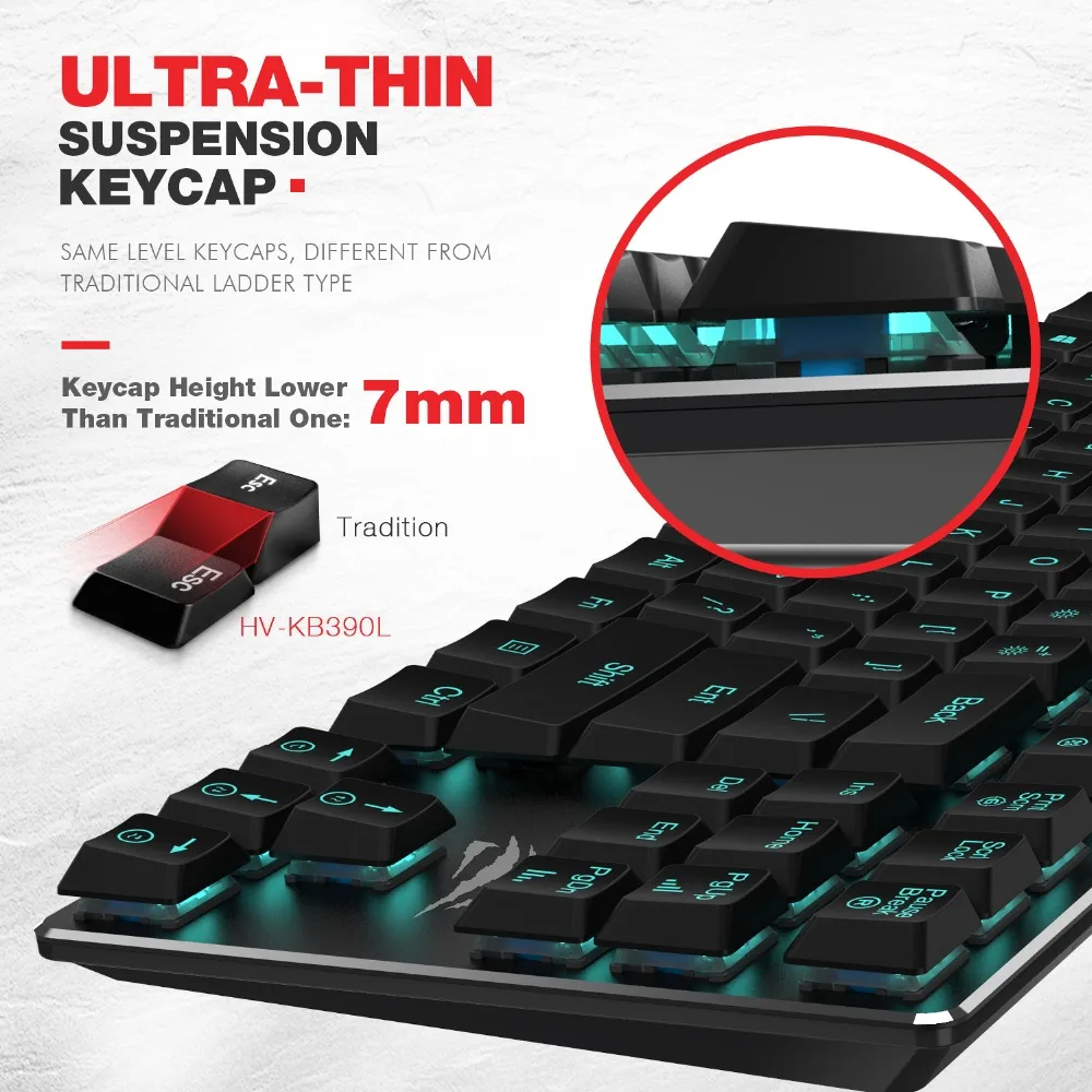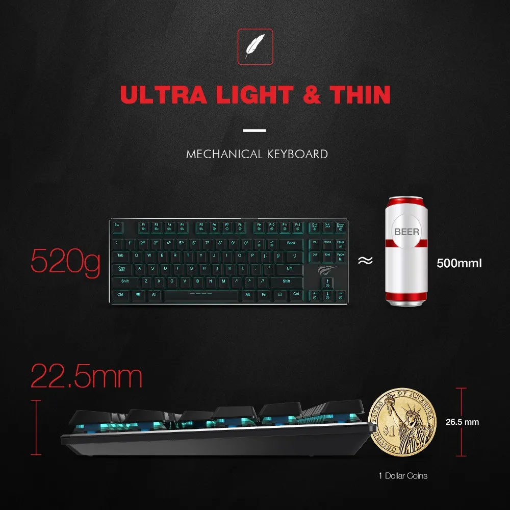 Product Name: HAVIT HV Tastiera Meccanica 87 Tasti Ultra Low Assi di Metallo Tastiera Tastiera USB Cablato Mini Gaming Keyboard Interruttori Blu per PC HV KB390L