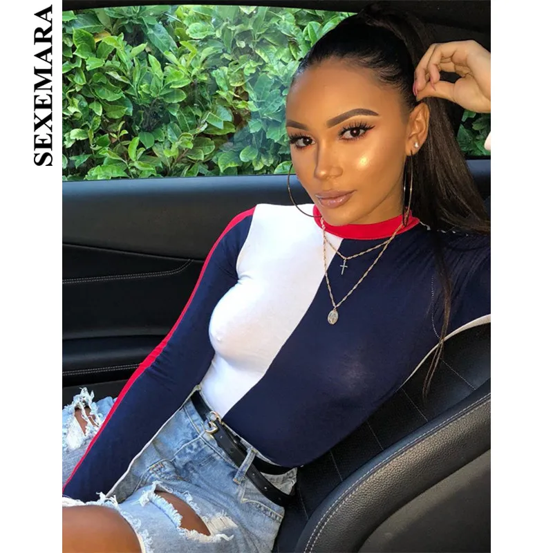Special Offer BOOFEENAA Blocco di Colore O Collo A Manica Lunga Della Tuta Delle Donne Sexy Autunno Magliette e camicette Streetwear Cotone Aderente Body e Tutine Clubwear C55 AA19 Discount 50% Today!