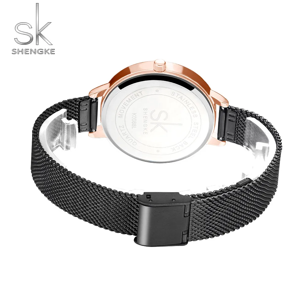 Special Offer Shengke Rosegold Nero Della Maglia Della Cinghia Delle Donne Orologi di Cristallo Creativo design del Quadrante di Lusso Delle Signore Movimento Al Quarzo Relogio Feminino Discount 54% Today!