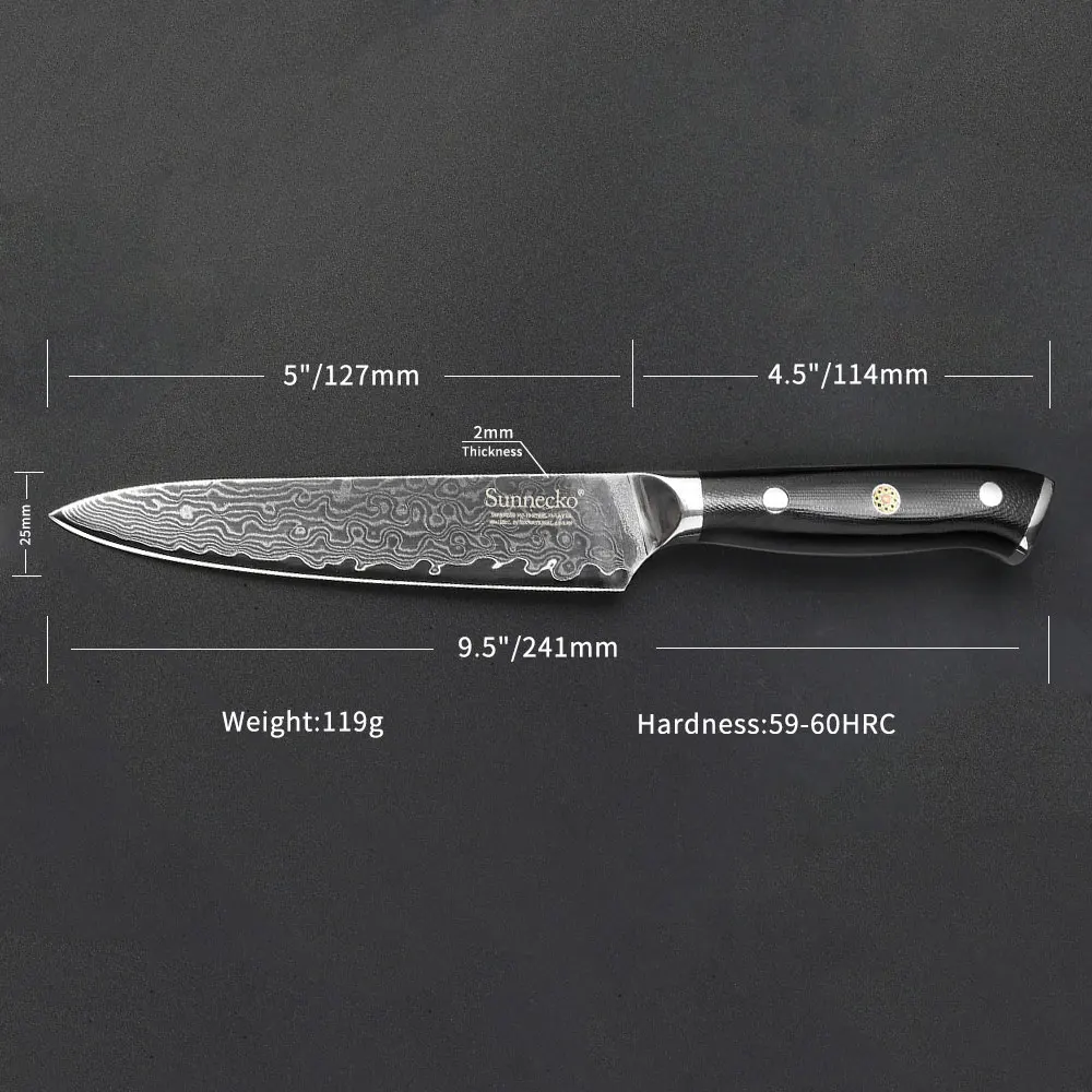 Product Name: SUNNECKO 5 \"pollici Coltelli utility Damasco Giapponese VG10 In Acciaio Sharp Lama Forte Durezza Coltelli Da Cucina G10 Maniglia Cutter Strumento
