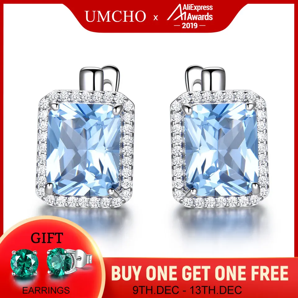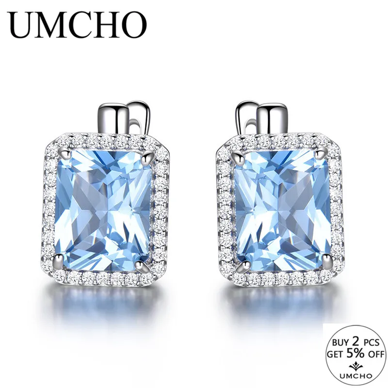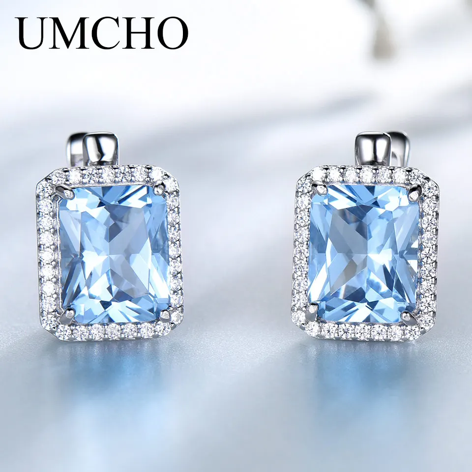 Special Offer UMCHO Rettangolo Di Lusso Creato Cielo Blu Topazio Orecchini a clip Solid 925 Sterling Silver Orecchini Della Pietra Preziosa Per Le Donne Gioielleria Raffinata Discount 58% Today!