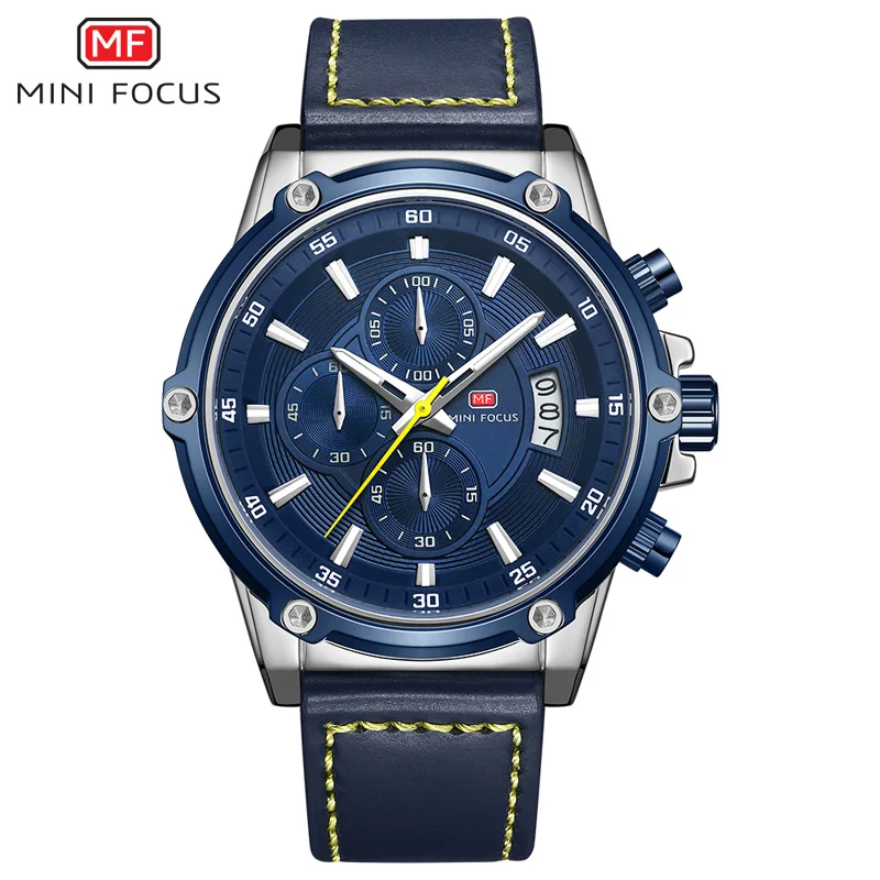 Product Name: MINI MESSA A FUOCO Mens Orologi Top Brand di Lusso Degli Uomini Della Vigilanza Impermeabile Cinturino In Pelle Relogio Masculino reloj hombre Blu erkek kol saati