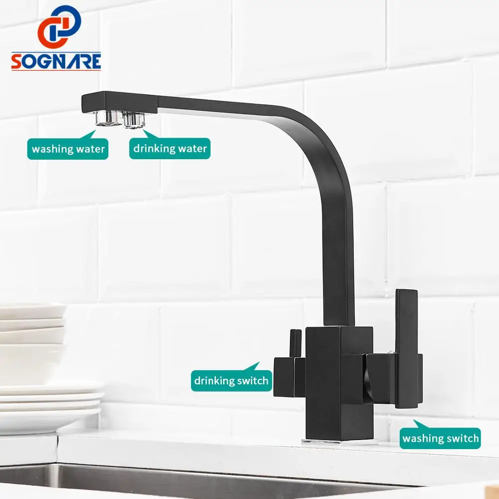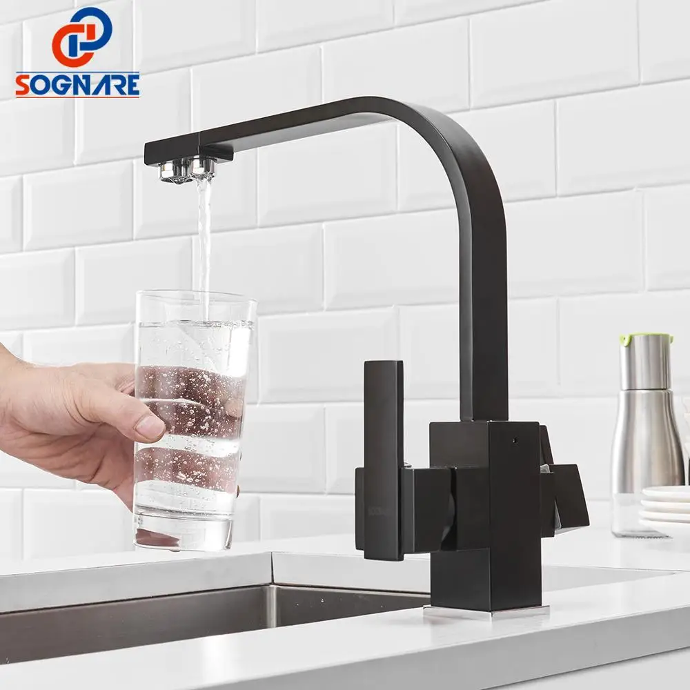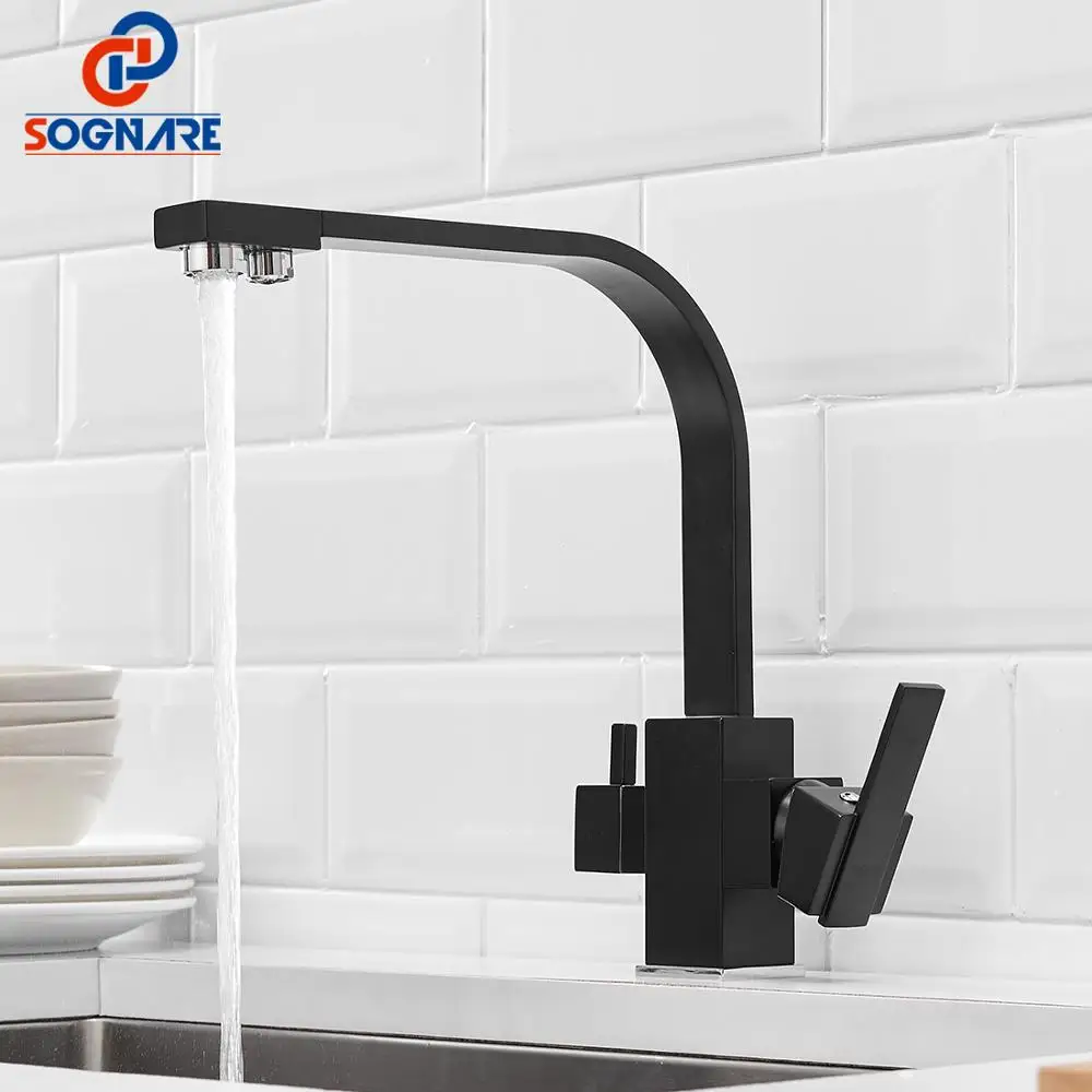 Special Offer Quadrato nero Rubinetti Della Cucina Rotazione di 360 Gradi 3 Way Filtro Acqua Acqua di Rubinetto Rubinetti della Cucina In Ottone Massiccio Lavandino Rubinetto di Acqua mixer Discount 0% Today!