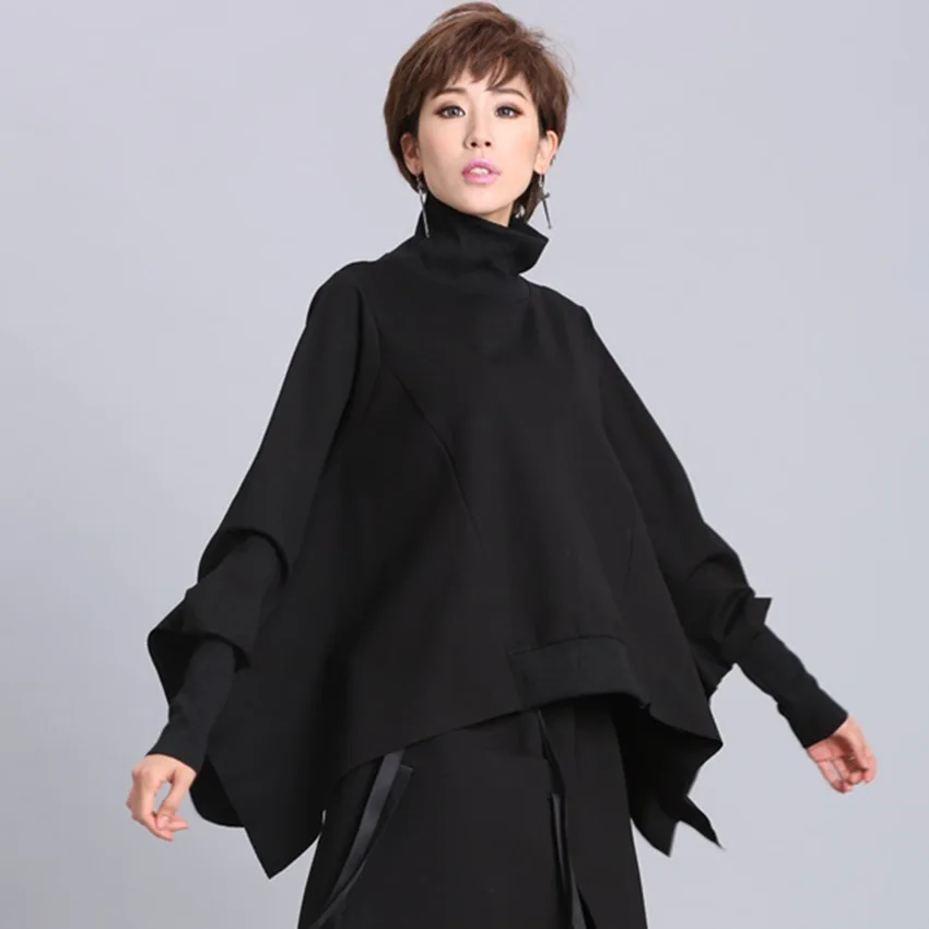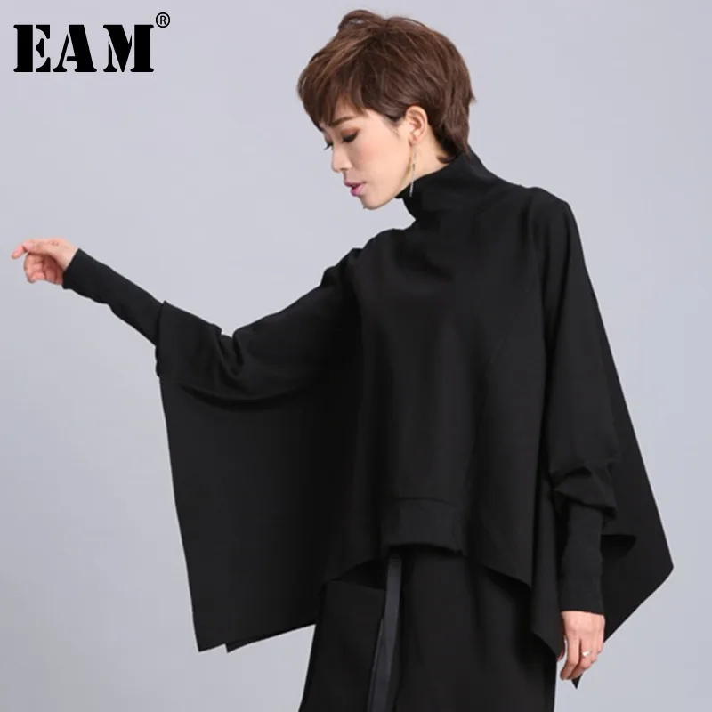 . (17% Off) Comprare [EAM] 2019 New Spring Nero Pieno Del Manicotto Del Batwing Del Collare Dolcevita Pullover Allentato Irregolare Delle Donne di Modo di Marea Cappotto OA869 Miglior Prezzo Online.