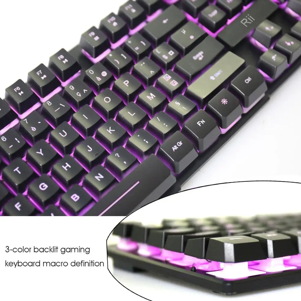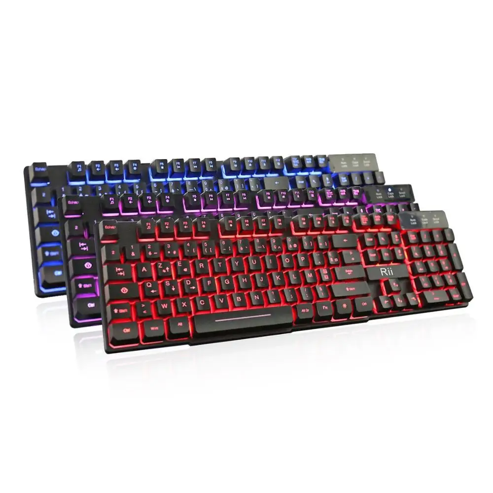 Product Name: Rii RK100 3 Color LED USB Wired Francese (Azerty) Gaming Keyboard Meccanica sensazione di (ROSSO, blu, Viola)