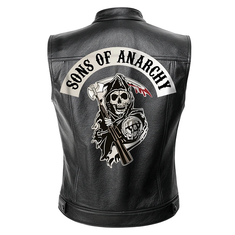 Special Offer Sons of Anarchy Giacca di Pelle Della Maglia Degli Uomini Del Motociclo Primavera Giubbotti SOA Punk Nero Motorrad Gilet Discount 20% Today!