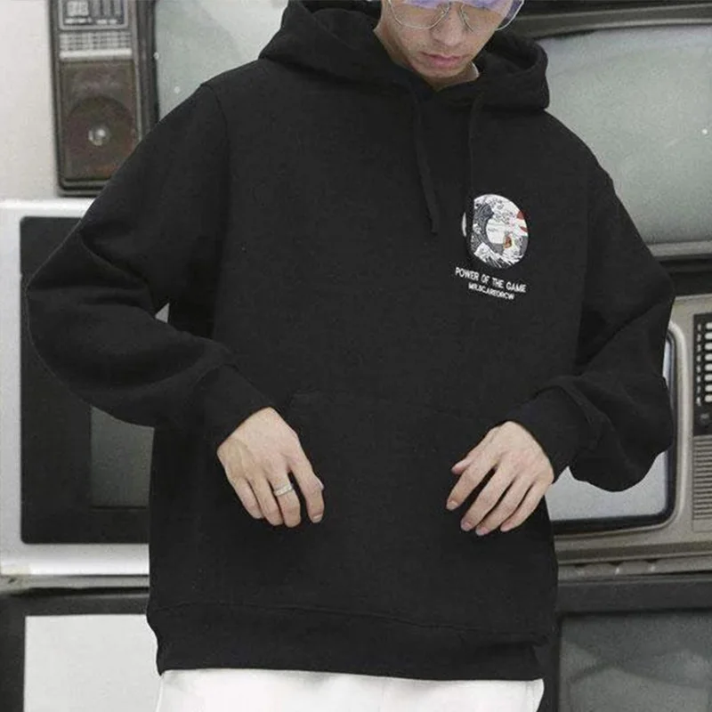 Product Name: Autunno Giapponese degli uomini di Stampa di Felpe Con Cappuccio Streetwear Divertente Gatto Onda Velluto Felpa Con Cappuccio Da Uomo 2019 Inverno casual Unisex Felpa Nera