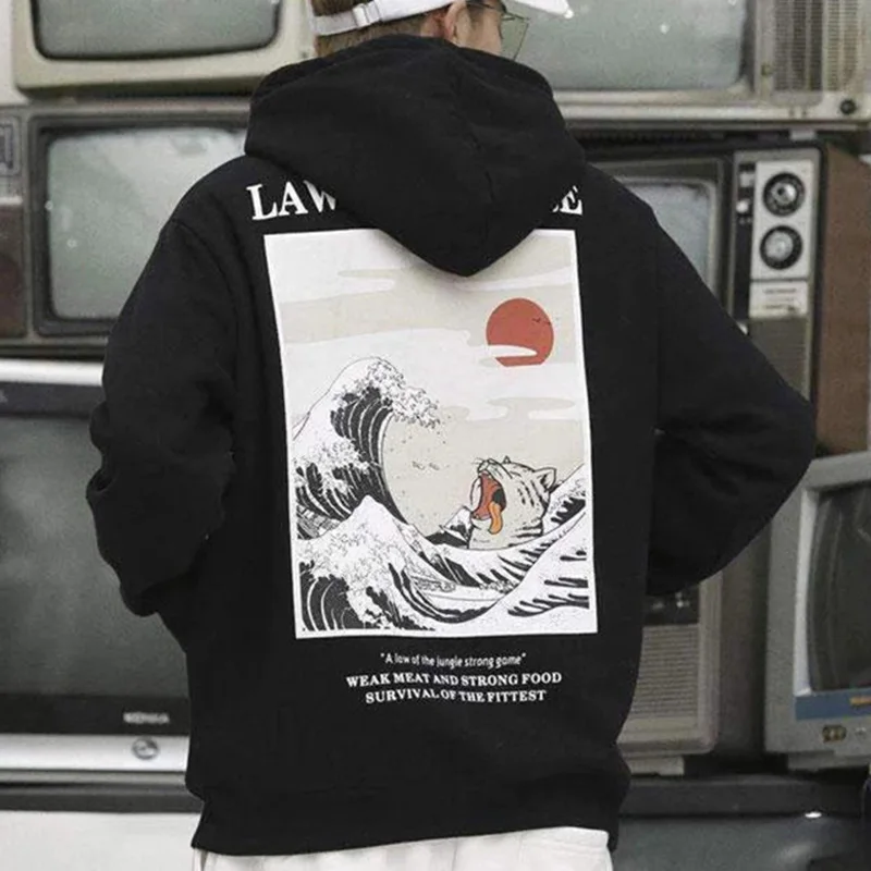 . (30% Off) Comprare Autunno Giapponese degli uomini di Stampa di Felpe Con Cappuccio Streetwear Divertente Gatto Onda Velluto Felpa Con Cappuccio Da Uomo 2019 Inverno casual Unisex Felpa Nera Miglior Prezzo Online.