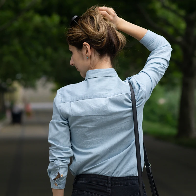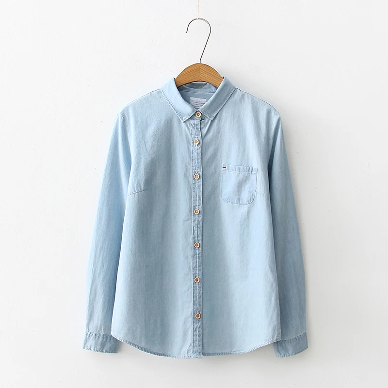 Special Offer GOPLUS delle Donne Camicia Blu Camicetta Abbigliamento per Le Donne Magliette e camicette 2019 Turn Imbottiture Del Collare Del Denim Camicette di Cotone Camicette Haut Chemise femme Discount 31% Today!