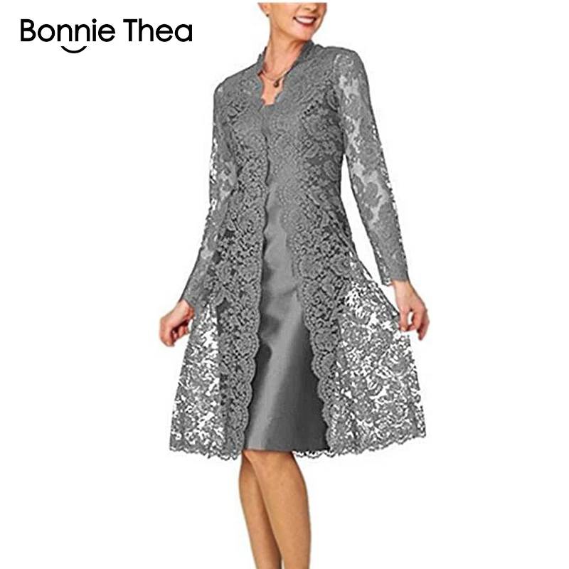 Special Offer Bonnie Thea delle Donne A Maniche Lunghe A due Pezzi Abito di Pizzo della signora Elegante Nero Del Partito Del Vestito Vestido Donne Abito di Primavera 2019 Discount 35% Today!