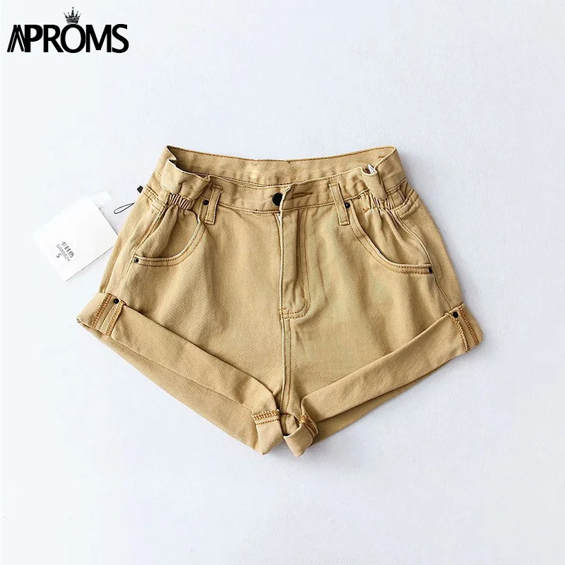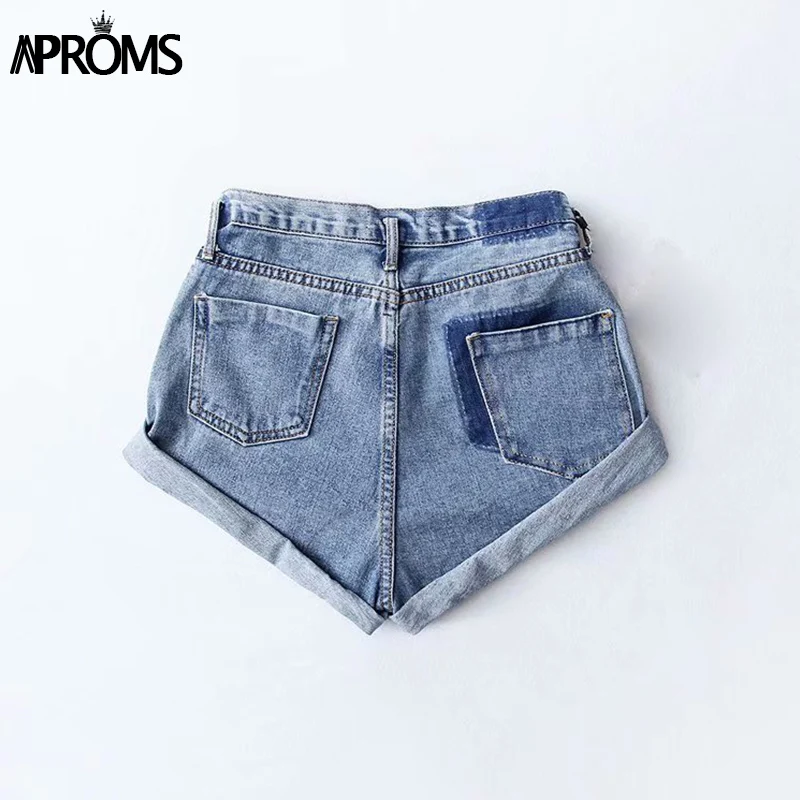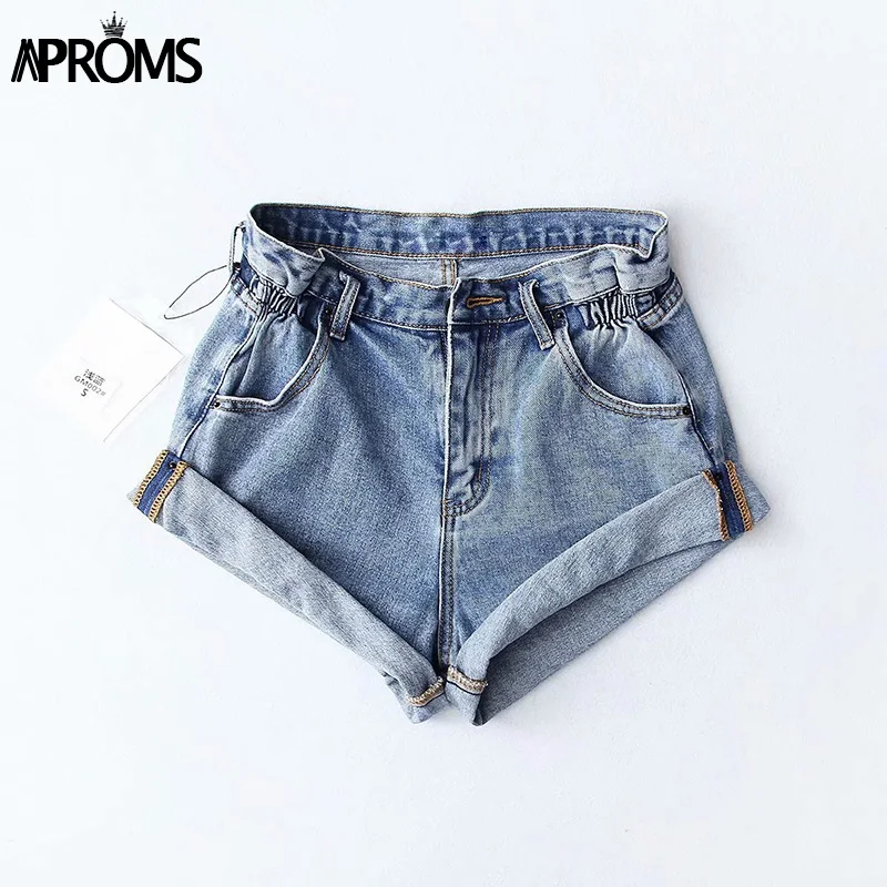 Product Name: Aproms casual Blu Denim shorts Sexy Delle Donne A Vita Alta Bottoni Tasche Slim Fit shorts 2019 Della Spiaggia di Estate Streetwear Jeans shorts