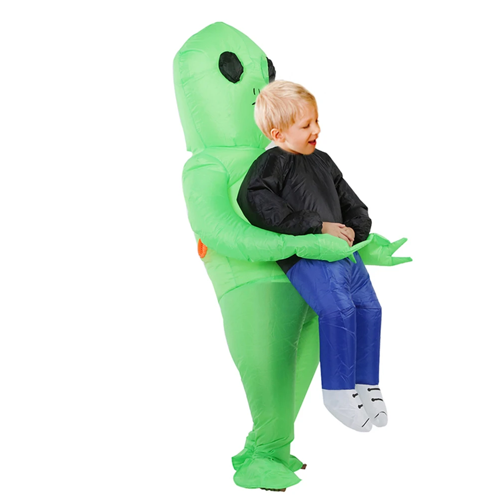 Product Name: Costume di Halloween Per Le Donne Gli Uomini Gonfiabili Verde Alien Cosplay per bambini e Per Adulti Divertente Blow Up Pak Del Partito Del Vestito Operato Del Partito maschera