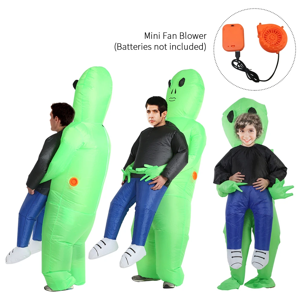 Special Offer Costume di Halloween Per Le Donne Gli Uomini Gonfiabili Verde Alien Cosplay per bambini e Per Adulti Divertente Blow Up Pak Del Partito Del Vestito Operato Del Partito maschera Discount 40% Today!