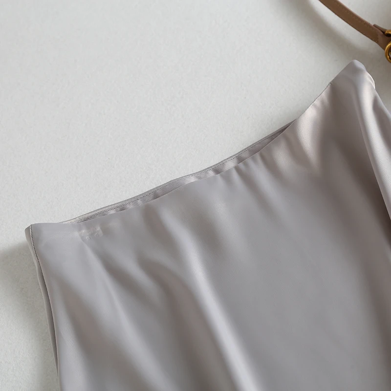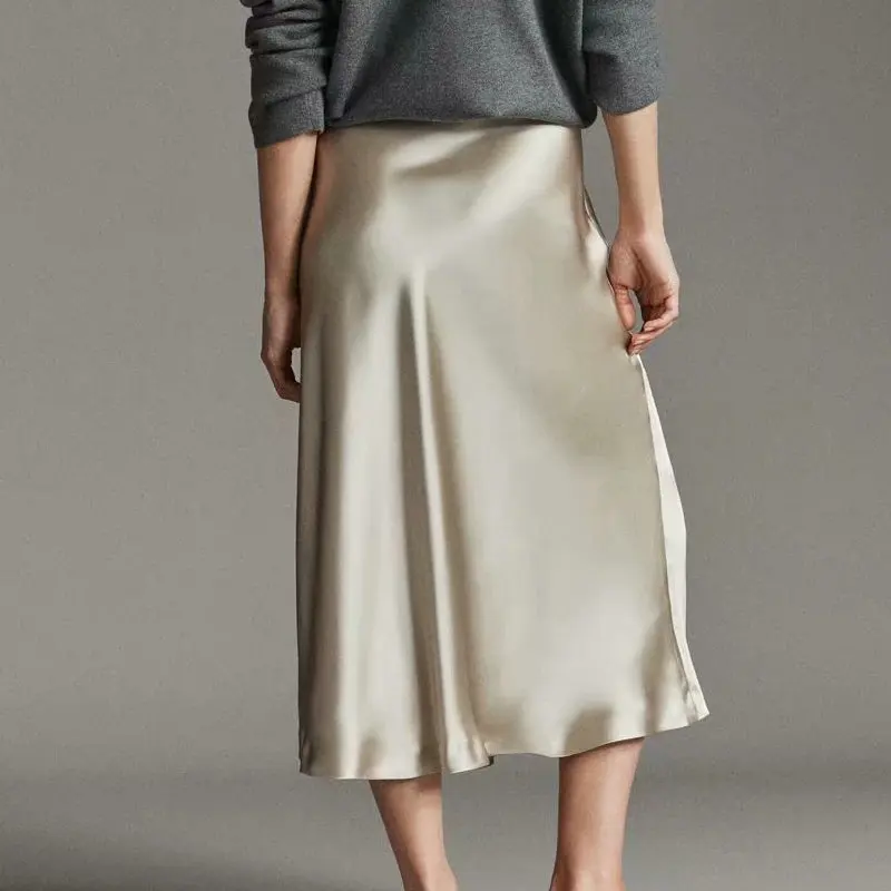 Product Name: 2019 Nuovo Caldo Delle Donne di Lusso a Metà polpaccio Lungo Morbido Raso Di Seta Liscia Gonne Ufficio Della Signora del Hight Vita In Argento Lucido nero Del Partito Del Pannello Esterno