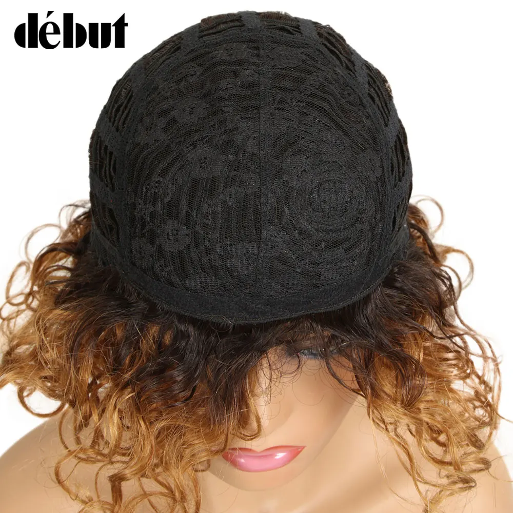 Product Name: Debutto Brasiliano Breve Arricciatura Dei Capelli Umani Parrucche di Remy Brevi Parrucche 100% Dei Capelli Umani Sassy Curl Ombre Parrucche Dei Capelli Umani Per nero Delle Donne