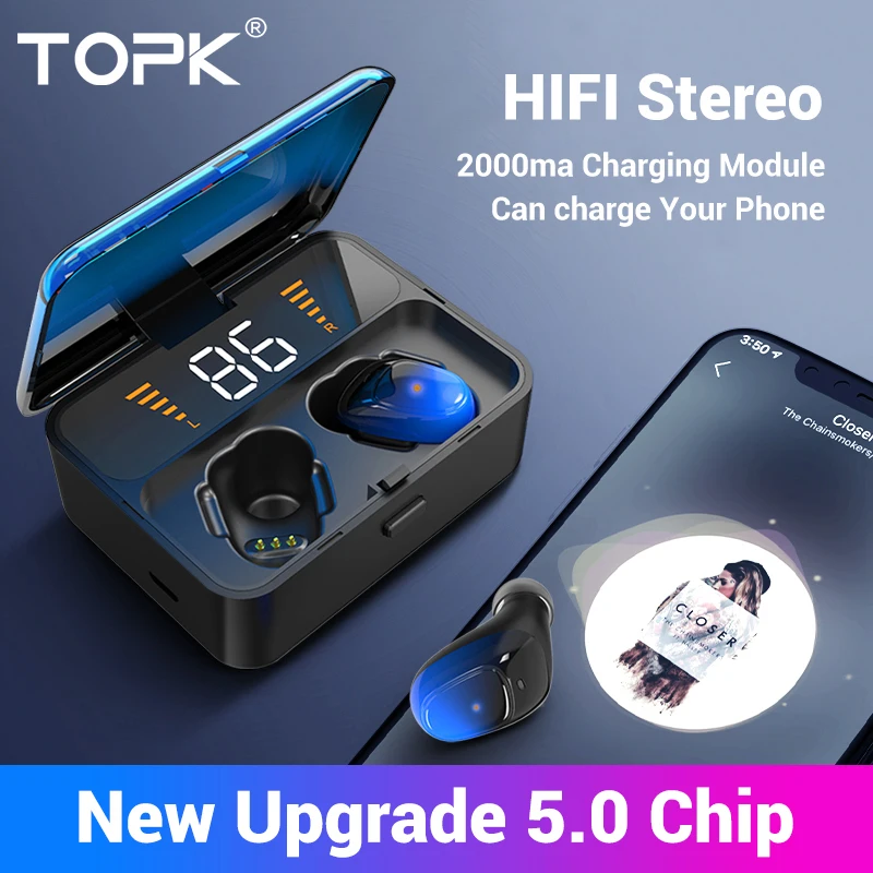 Product Name: TOPK F13 ES01 TWS 5.0 Auricolari Bluetooth V5.0 Stereo Portatile di Tocco Senza Fili Auricolari Con Lo Sport Bass Auricolare LED di Alimentazione display