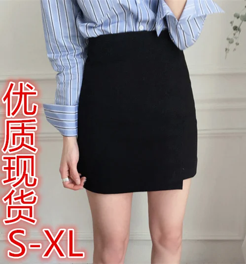 Product Name: 2018 NUOVA Estate di Modo Delle Donne del Pannello Esterno solido nero Sexy A Vita Alta di A line OL office lady Casual Mini Gonne