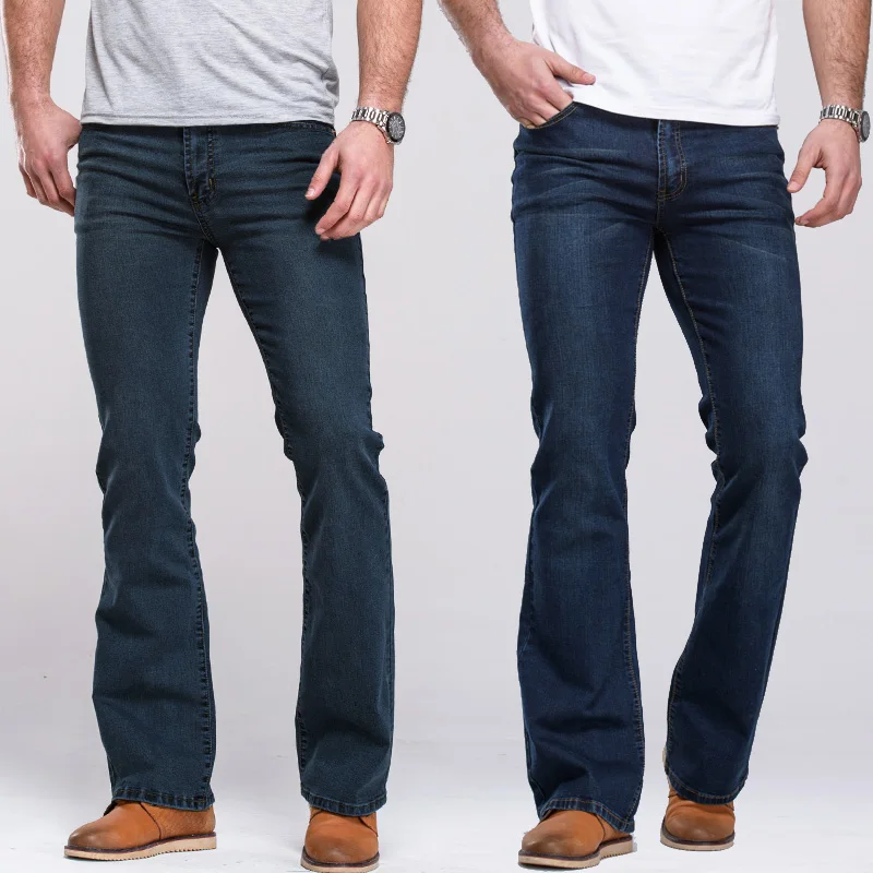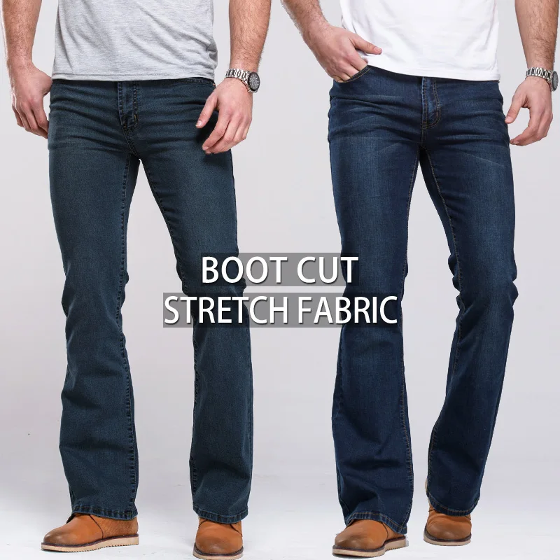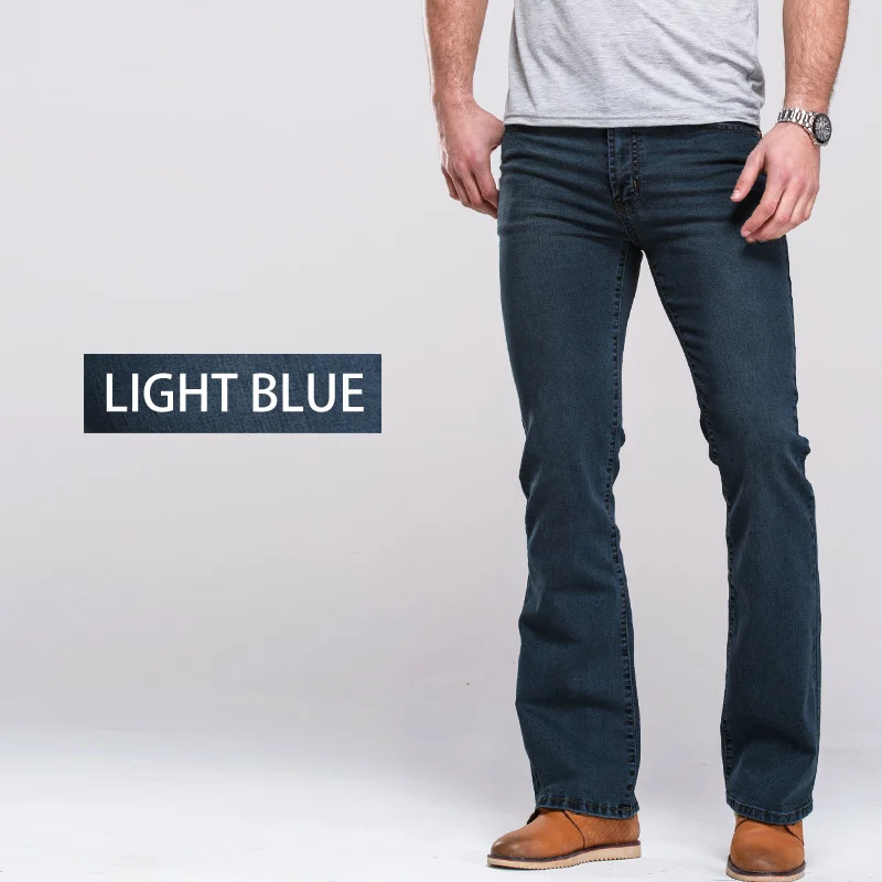 Special Offer Mens Dei Jeans Boot Cut Leggermente Svasato Slim Fit Famoso di Marca Nero Blu jeans Del Progettista Classico Maschio di Stirata Del Denim dei jeans Discount 51% Today!