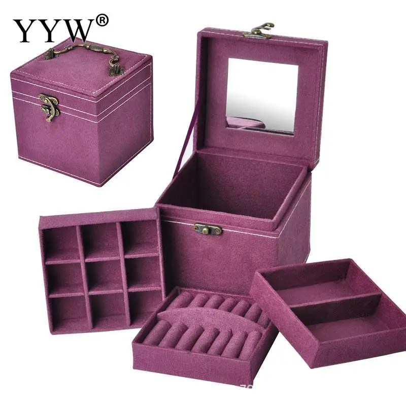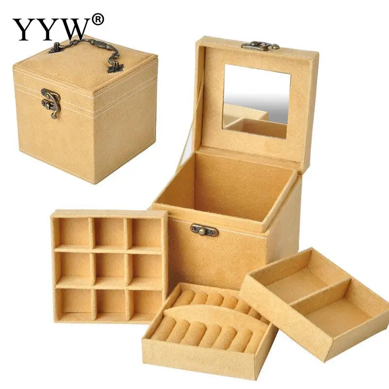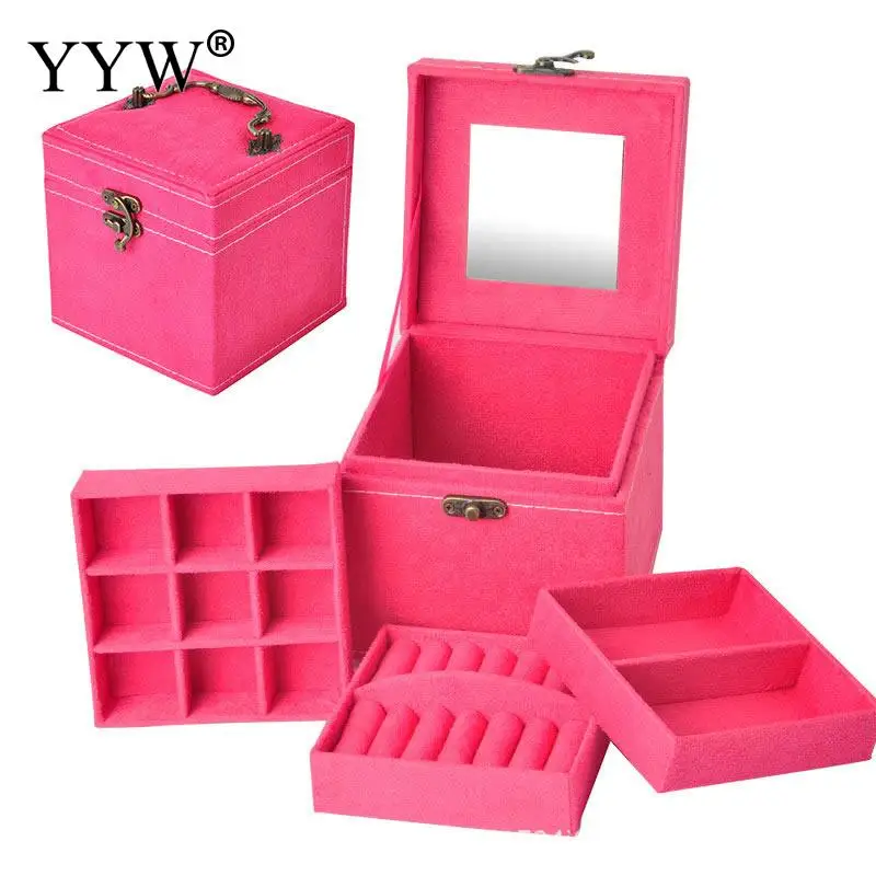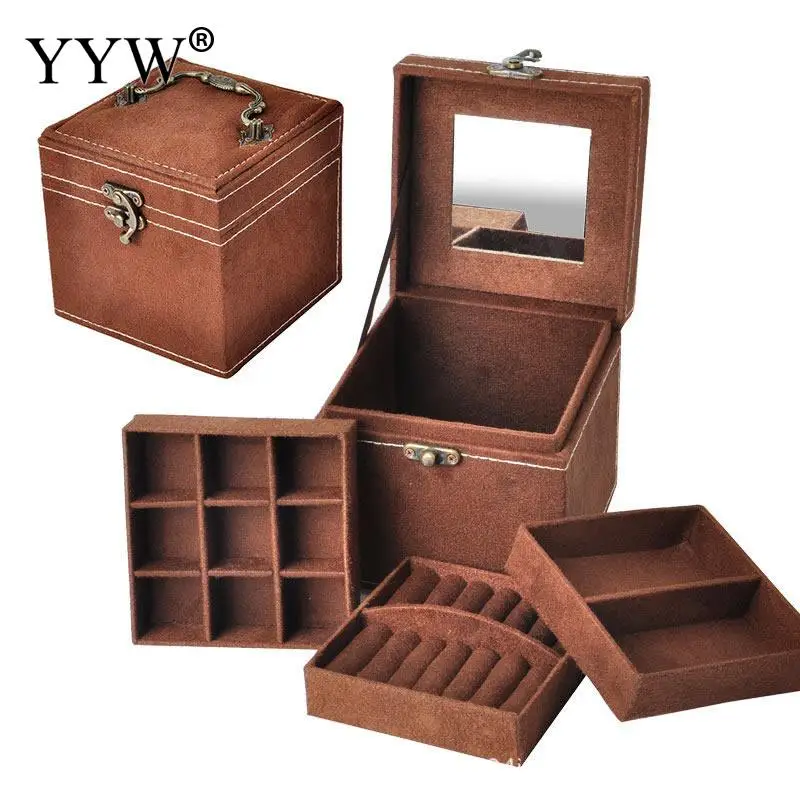 Product Name: 12x12x12cm Vintage Velluto A tre Livelli Jewelry Box Multideck Bagagli Custodie con Specchio In Legno di Alta qualità Regalo di Compleanno Di Nozze
