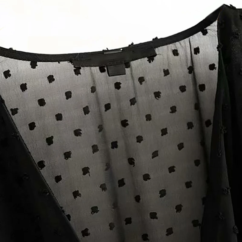 Special Offer Estate Sexy Profondo Scollo A V Dress Net Vedere Attraverso Tre Quarti Femminile casual Nero Abiti Abiti FFZYQ404 Discount 45% Today!