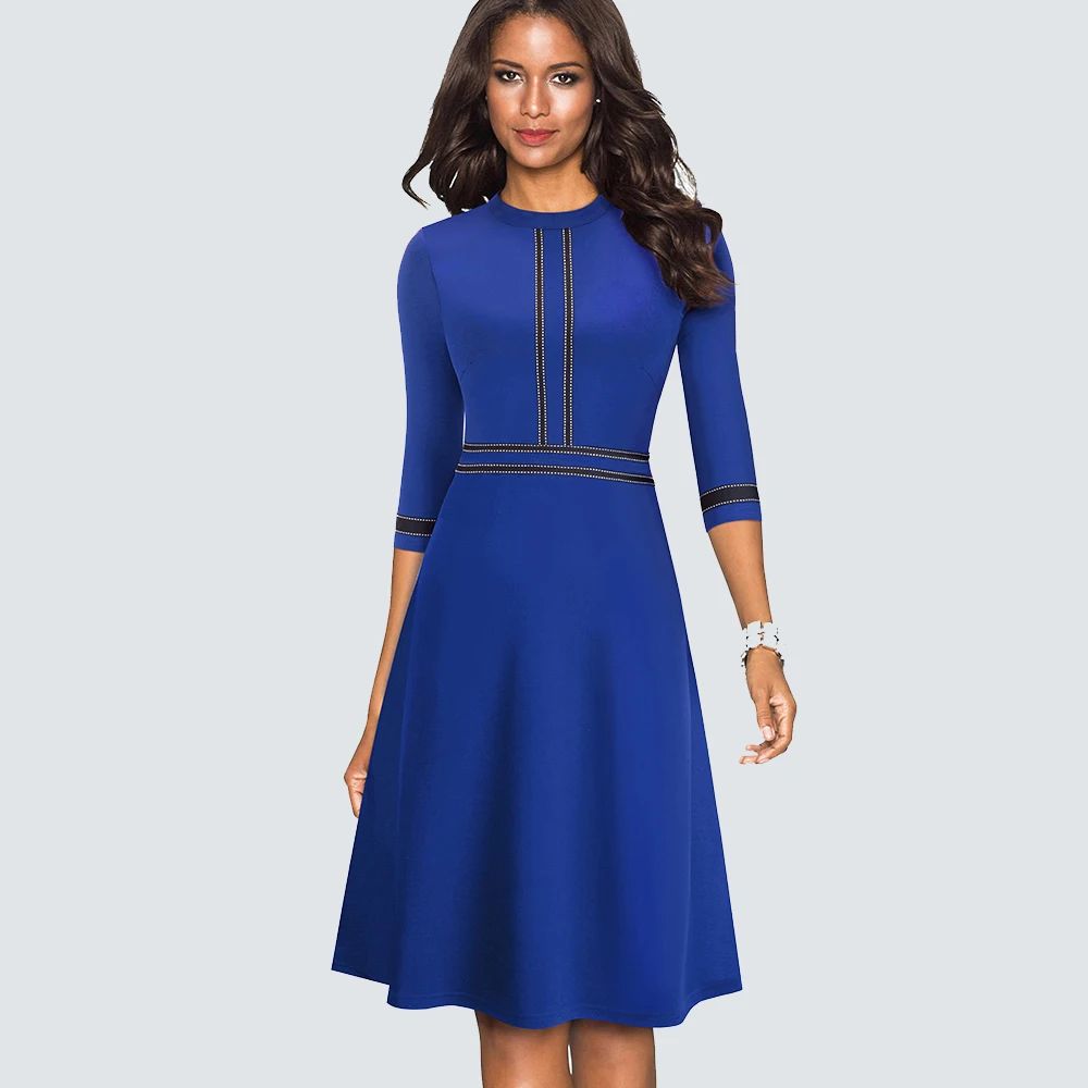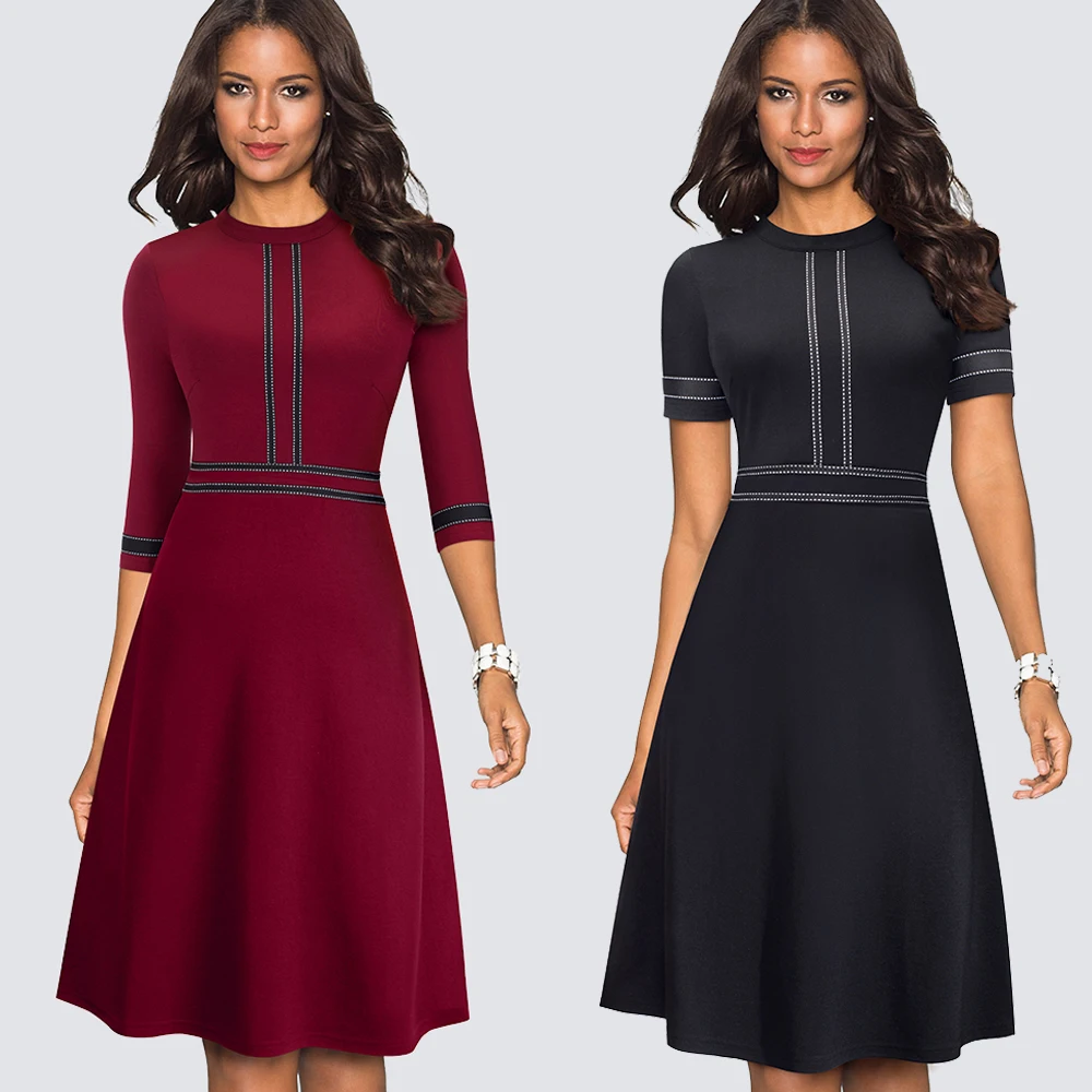 . (50% Off) Offerte Donne Vintage Swing Ufficio A line Del Vestito Da Partito Elegante Della Rappezzatura Skater vestidos Vestito Nero HA135 Economici Prezzo Online.