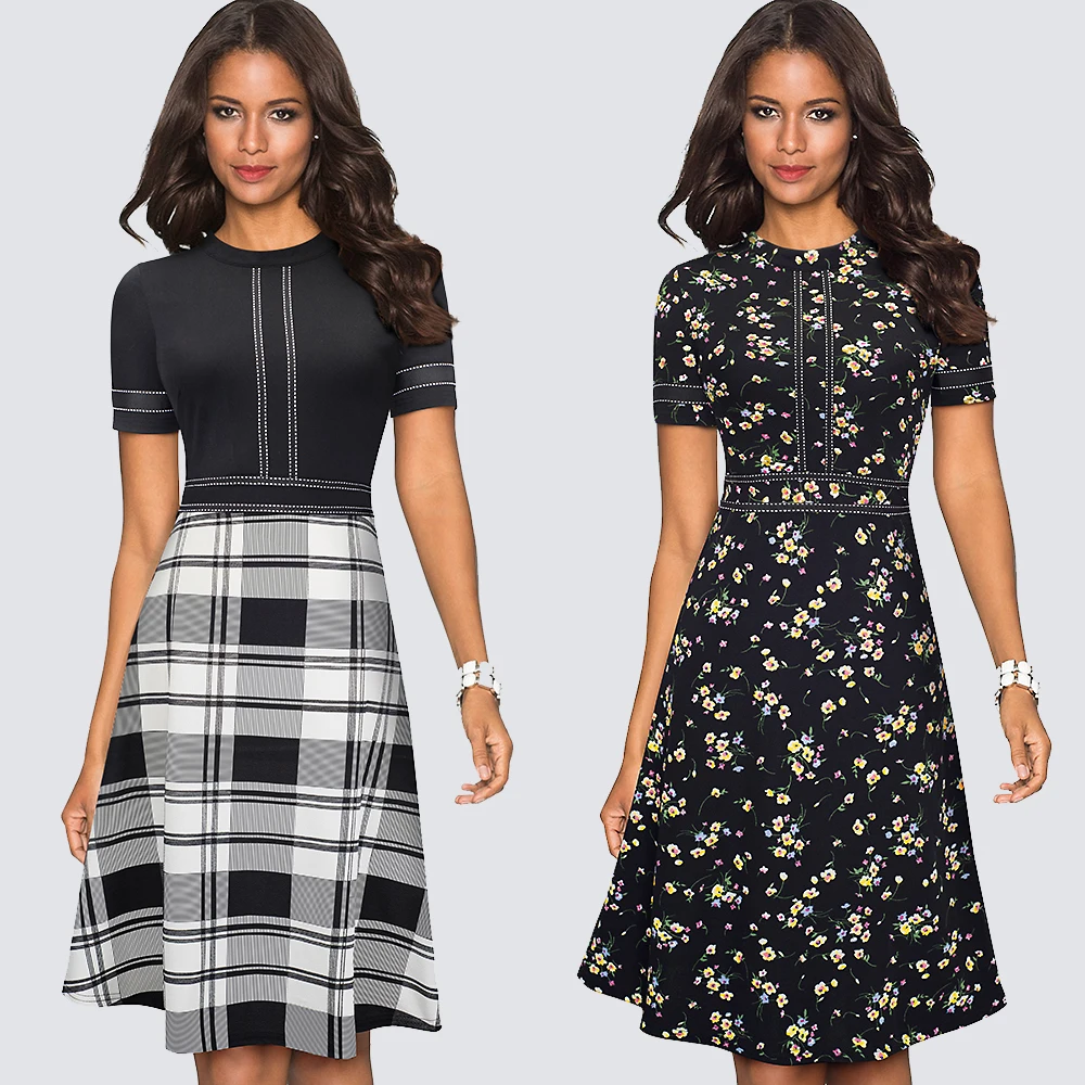 Special Offer Donne Vintage Swing Ufficio A line Del Vestito Da Partito Elegante Della Rappezzatura Skater vestidos Vestito Nero HA135 Discount 50% Today!