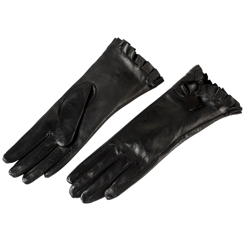 Product Name: Delle donne gIoves, Foral, Poliestere, In Vera Pelle, Lunghezza 25 centimetri, guanti di pelle Nera, signore gIoves, Femminile gIoves, Trasporto libero