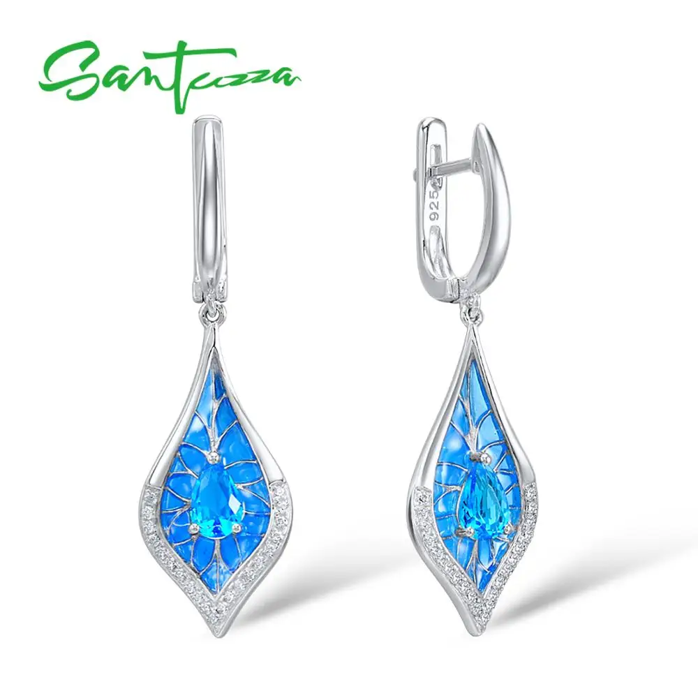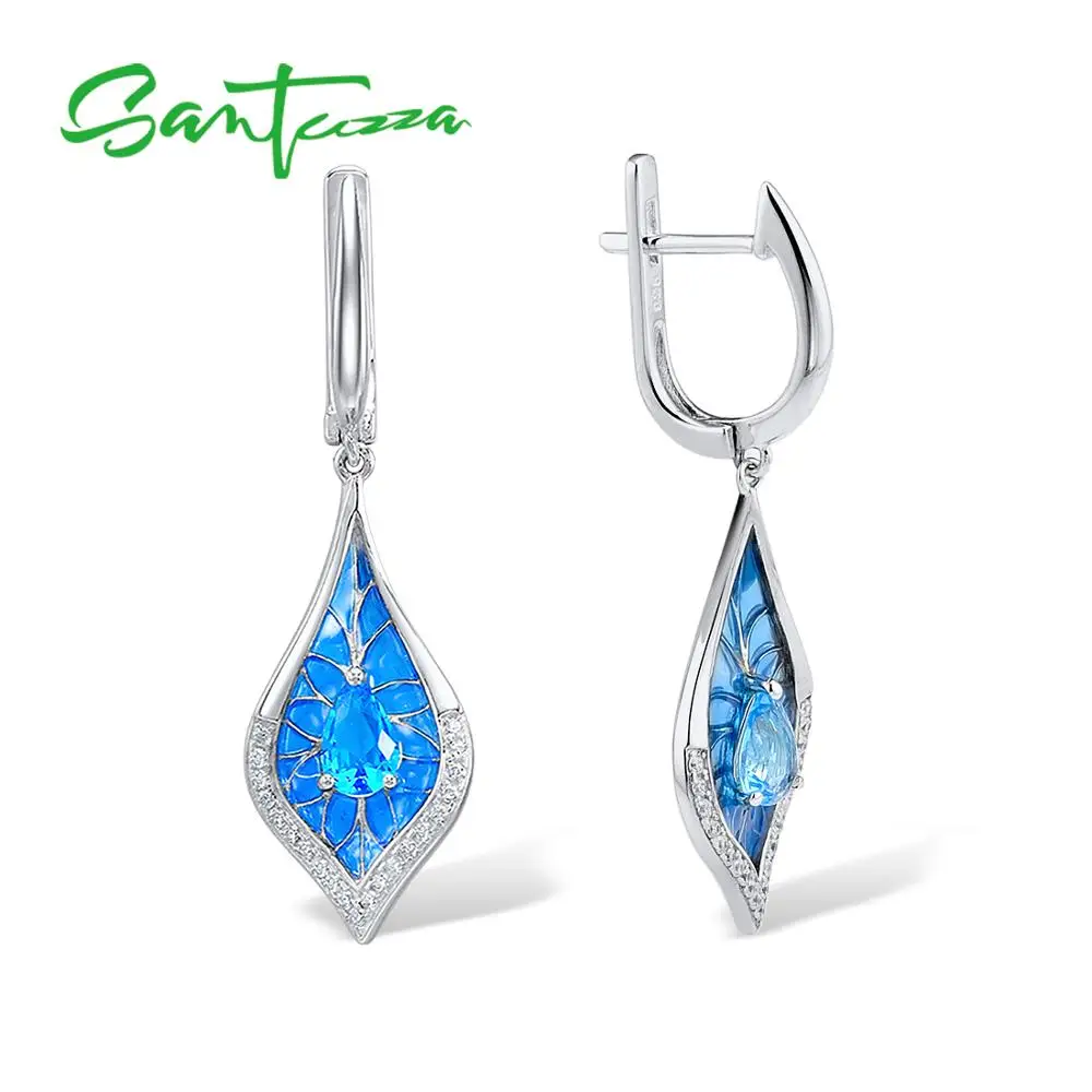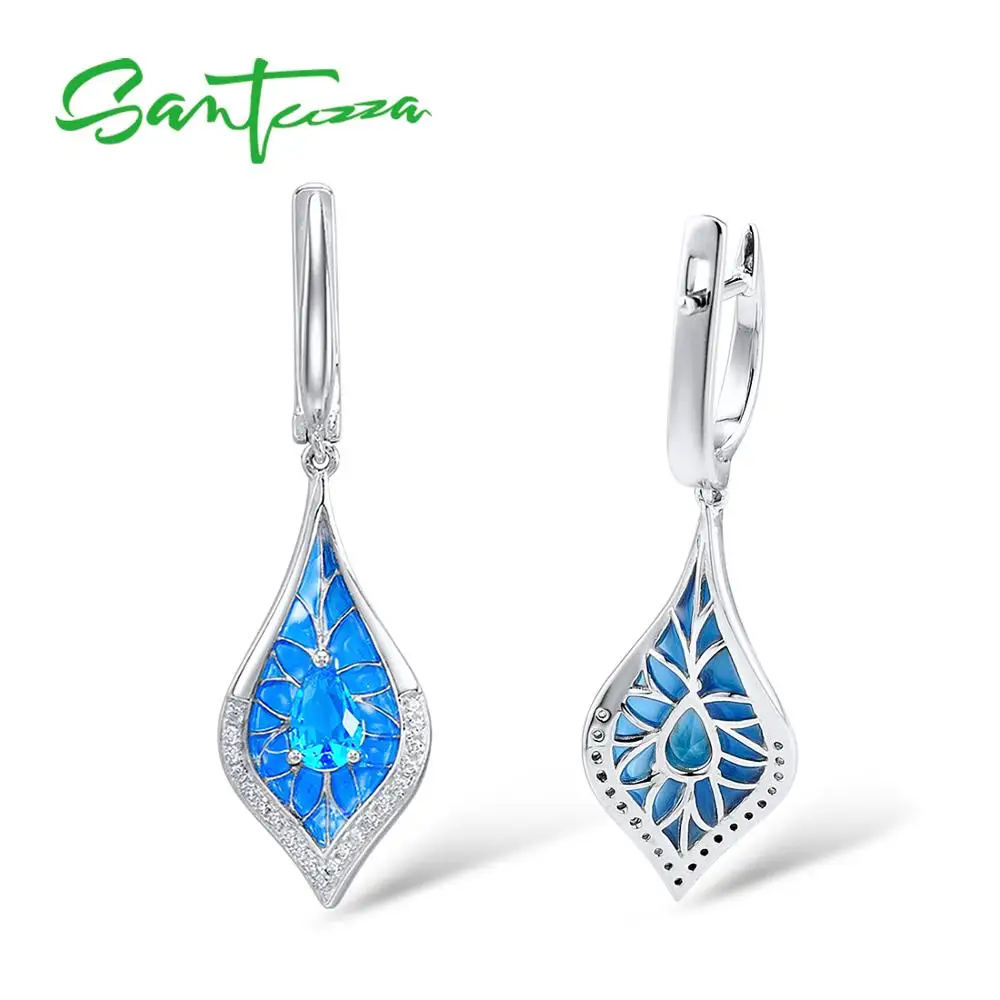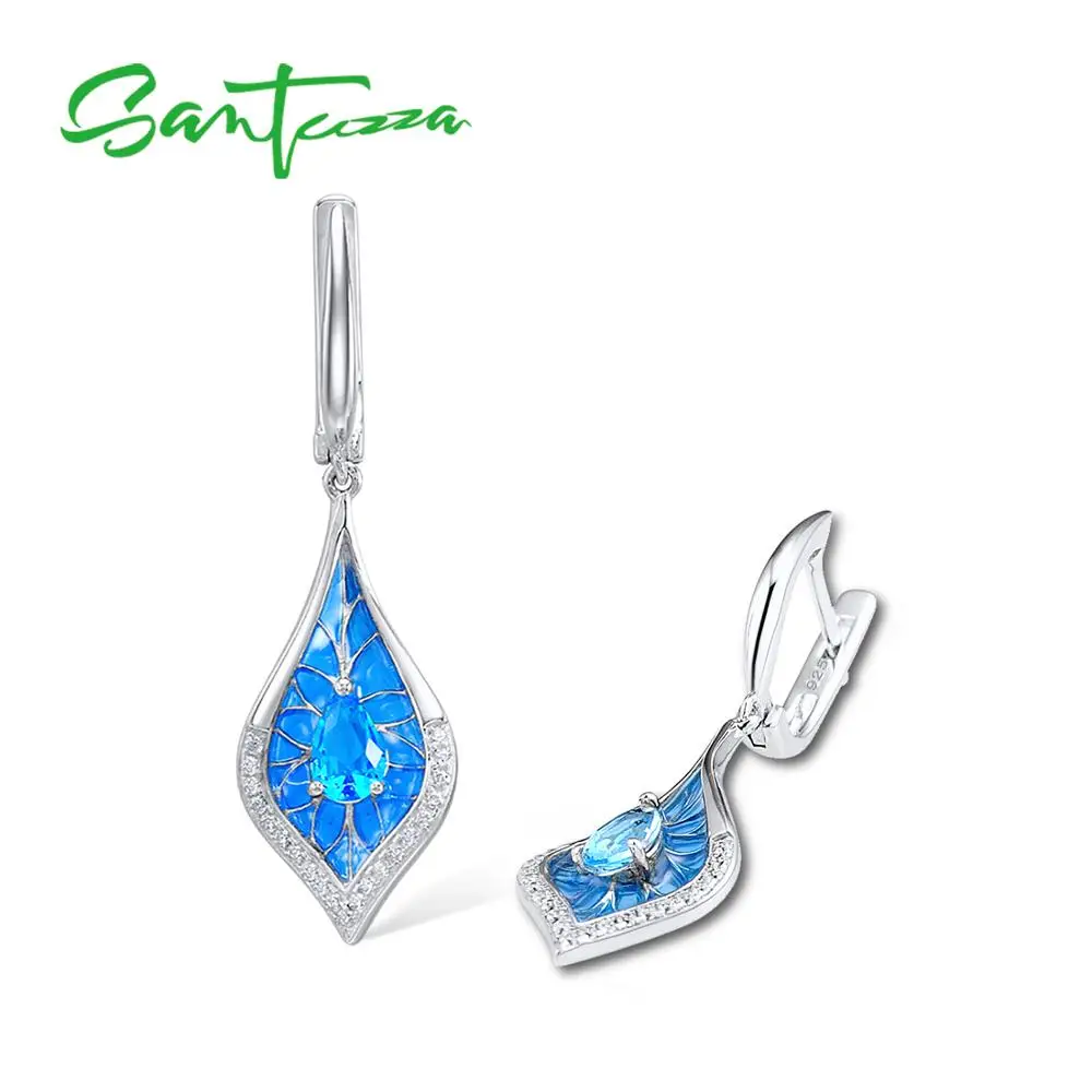 Special Offer SANTUZZA Orecchini In Argento Per Le Donne Pure 925 Sterling Silver Blu Scintillante di Cristallo del Foglio di Orecchini a pendaglio brincos Partito Gioielleria Raffinata Discount 72% Today!