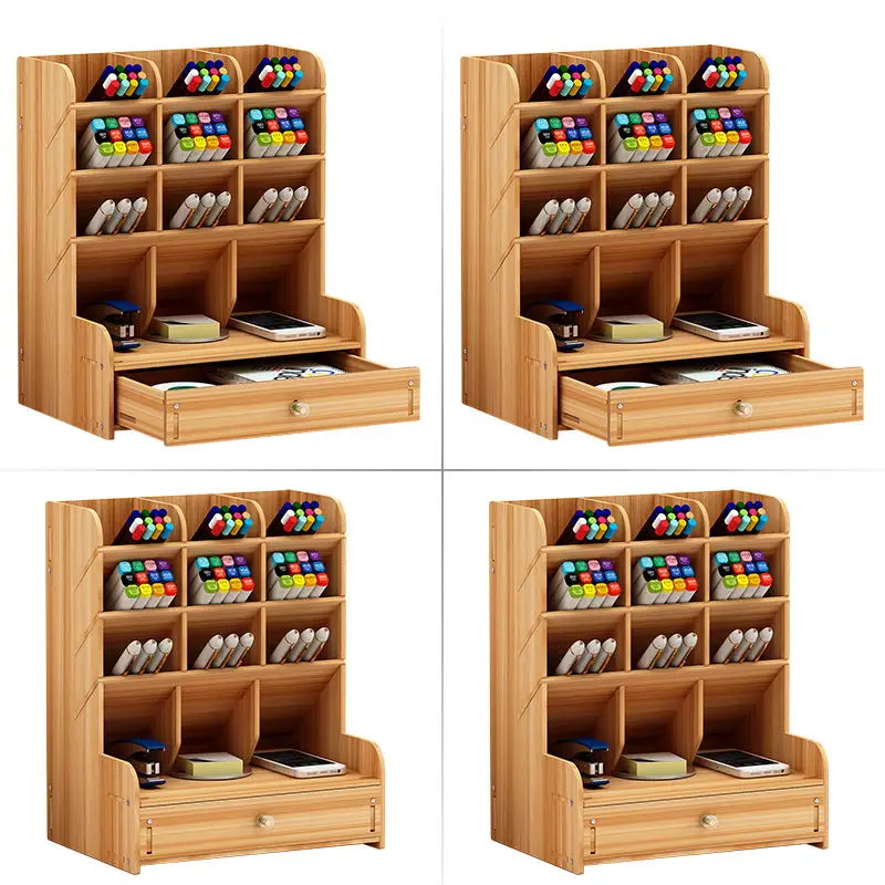 Product Name: Multi funzione di Legno 13 Griglie Desktop Del Basamento Del Supporto di Spazzola Cosmetico Scatola di Immagazzinaggio Per La Matita Della Penna Pennello Cosmetico Esposizione Dei Monili cremagliera