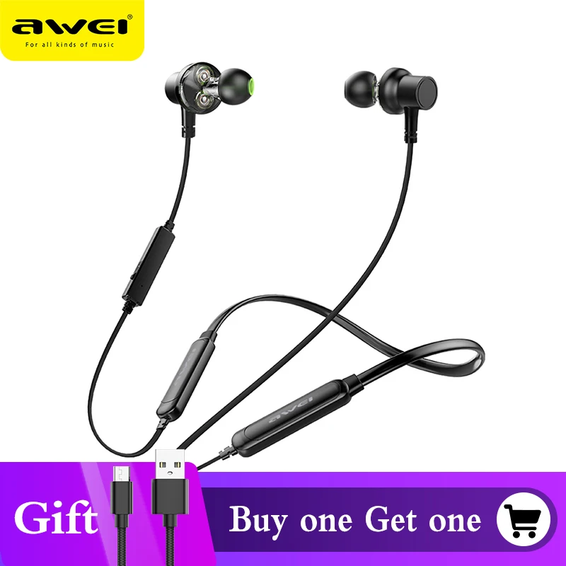 . (25% Off) Comprare AWEI G20BLS Senza Fili di Bluetooth del Trasduttore Auricolare Cuffie Con Microfono Dual Driver Rumore Annullare Auricolare 3D Stereo Auricolari Magnetiche Economici Prezzo Online.