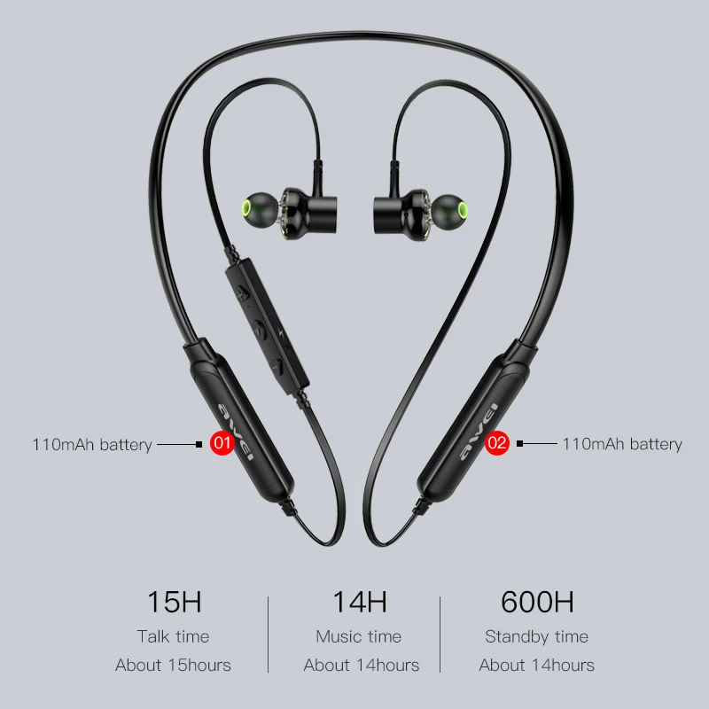 Product Name: AWEI G20BLS Senza Fili di Bluetooth del Trasduttore Auricolare Cuffie Con Microfono Dual Driver Rumore Annullare Auricolare 3D Stereo Auricolari Magnetiche