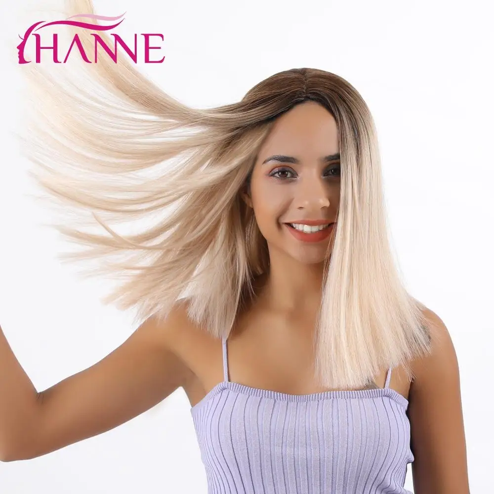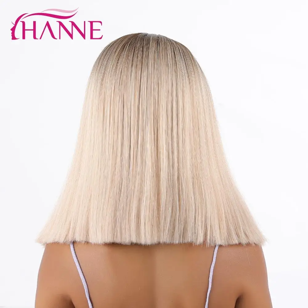 Product Name: HANNE Sintetico Breve Rettilineo Parrucche per il Nero o Bianco Donne Ombre Marrone Biondo Rosa Parte Centrale Naturale Dei Capelli