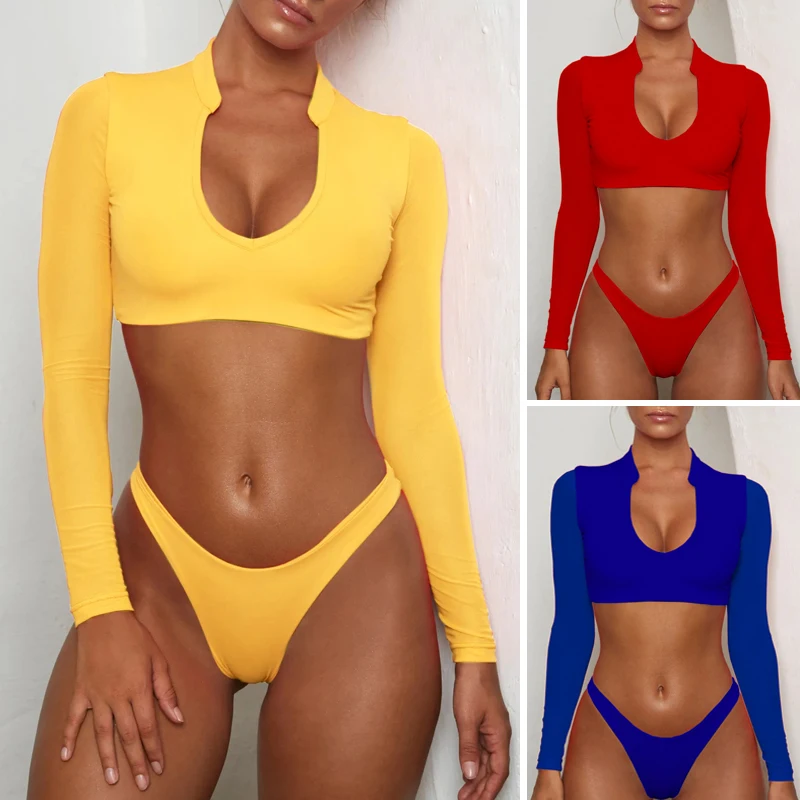 Special Offer Bikinx manica Lunga bikini brasiliano taglio Alto costume da bagno bianco costumi da bagno Perizoma donne bagnanti Micro bikini 2019 della maglia di nuoto estate Discount 43% Today!