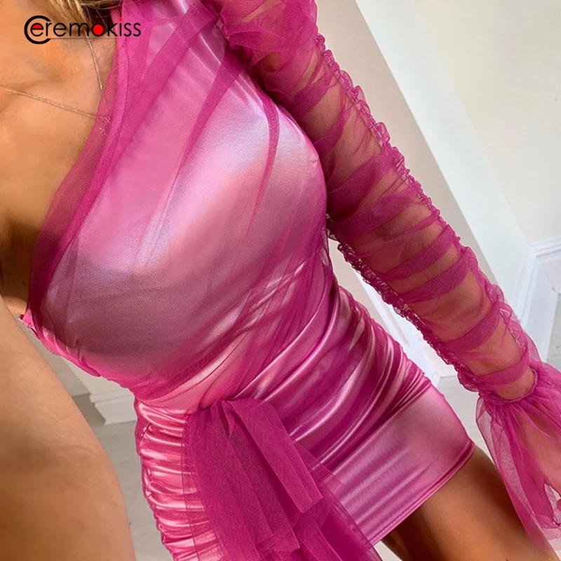 Special Offer Ceremokiss Della Signora Elegante Festa di Nozze Vestito Dolce Della Maglia Increspato Slim Mini Wrap Dress Chic Del Manicotto di Soffio vestito di Un Spalla del Vestito di Compleanno Discount 43% Today!