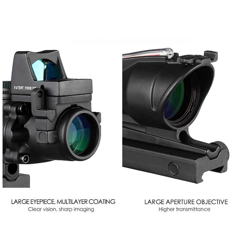 Product Name: Acog 4x32 Rosso Fibra Fonte Reale In Fibra di Scope W Rmr Micro Red Dot Sight Segnato Versione Nera riser Strumento Ottico