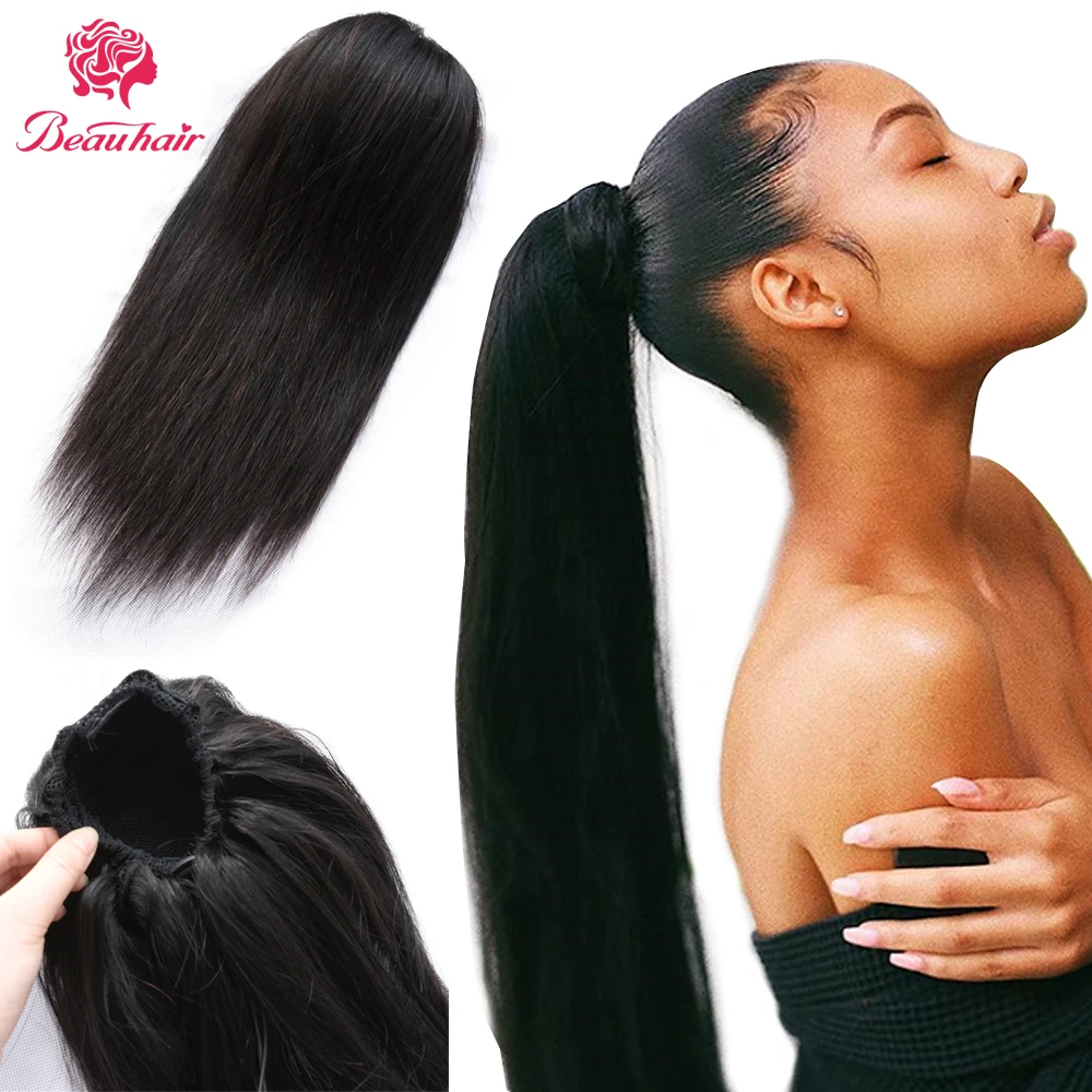 Product Name: Dritto Coda di Cavallo Capelli Coulisse Coda di Cavallo Con Pinze In Naturale Dei Capelli Umani di 100% Brasiliano Non Remy Dei Capelli 1 Pezzo Estensioni