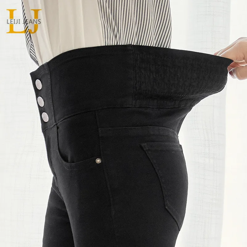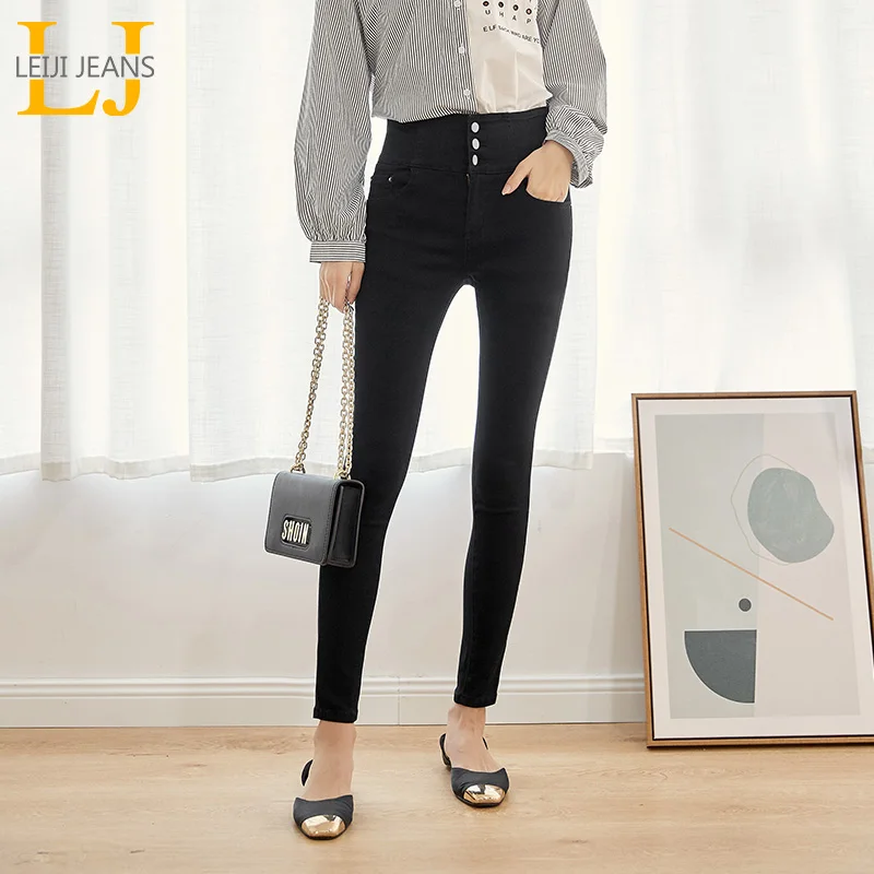 Special Offer LEIJIJEANS 2019 di autunno a vita alta sottile dei jeans delle signore button fly elastico in vita legging i jeans più il formato elastico nero delle donne dei jeans Discount 50% Today!