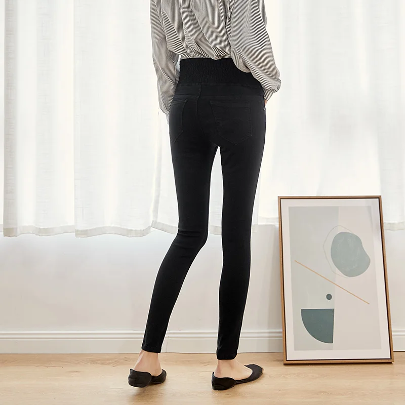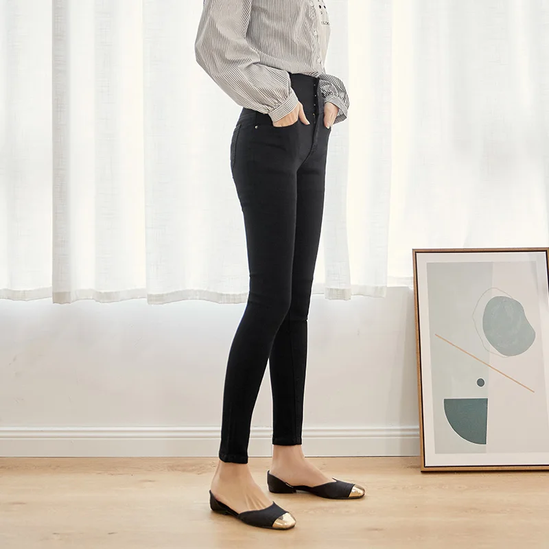 Product Name: LEIJIJEANS 2019 di autunno a vita alta sottile dei jeans delle signore button fly elastico in vita legging i jeans più il formato elastico nero delle donne dei jeans