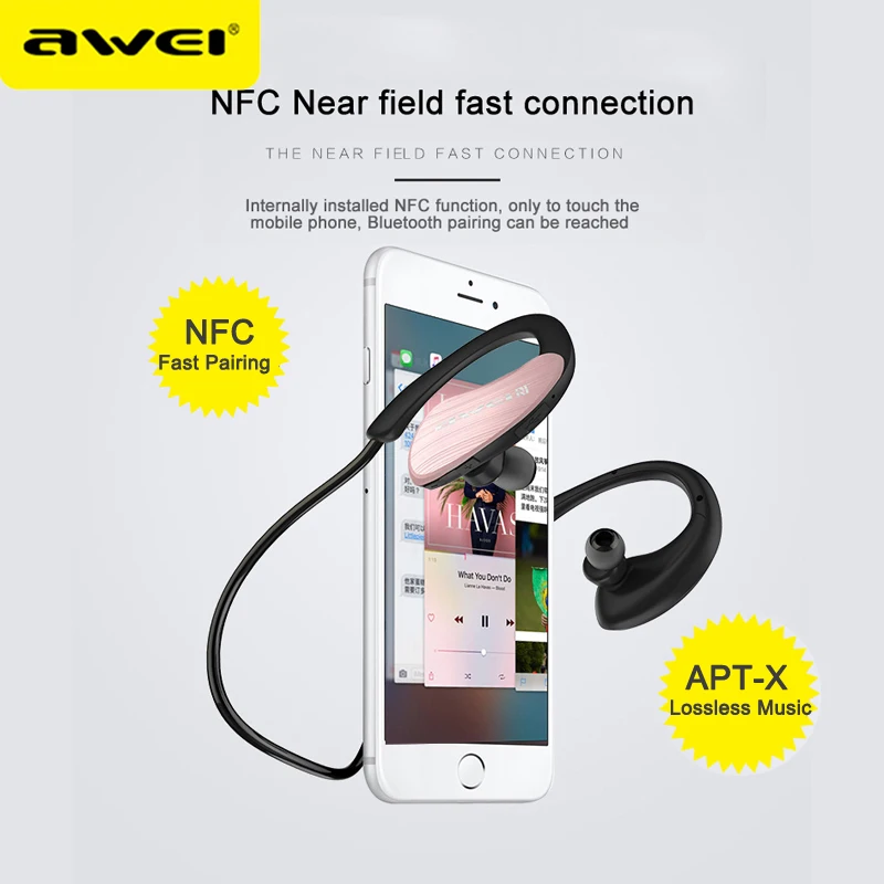 Product Name: AWEI A885BL APT X Auricolari Bluetooth Senza Fili Sport Ear hook HiFi Stereo Dei Bassi del Suono Senza Perdita di Suono NFC Connet Veloce di Ricarica